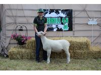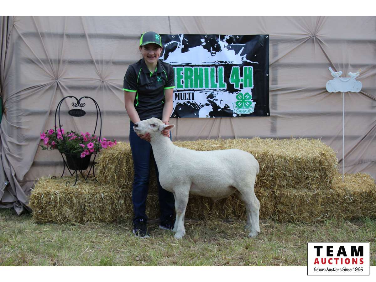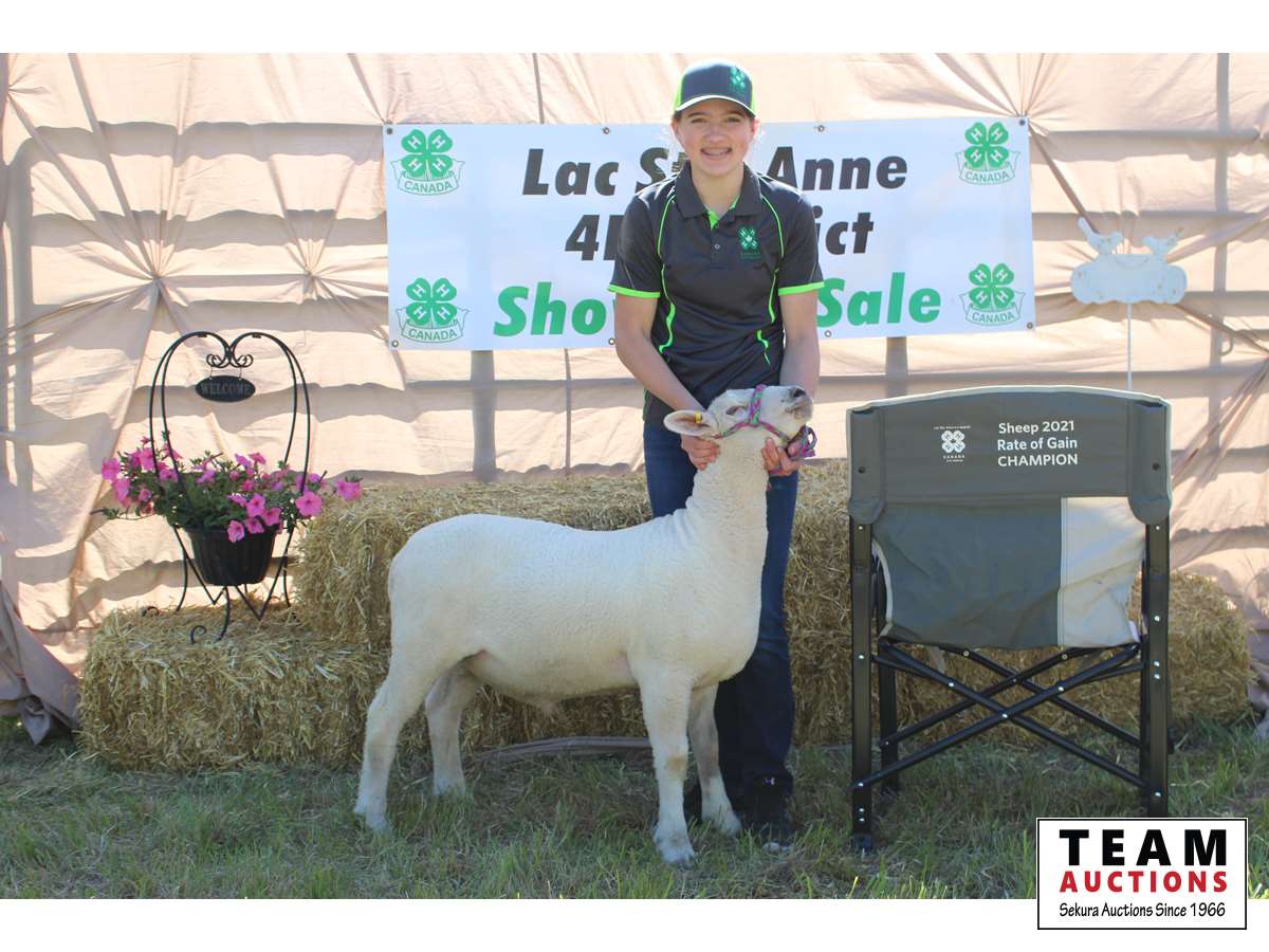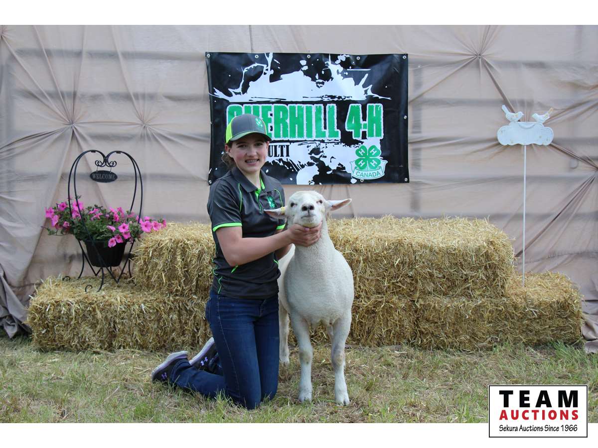 Hi my name is Hailey Russell I'm 14 years old and in grade 8. This is my 5th year in Cherhill 4-H multi club. 4-H has been an amazing learning experience. I have learned public speaking skills, how to be a great volunteer, and how to work hard. It has also been one of the many ways I've made friends. Some fun activities I like to do when I'm not doing chores or school are playing outside, making forts, playing on the bales, and painting pictures. My lamb's name is George. He is a friendly lamb who likes to nibble on hair and hoodie strings. George is very big and would be perfect for family meals. I have a spot booked at Sangudo after the sale.
