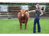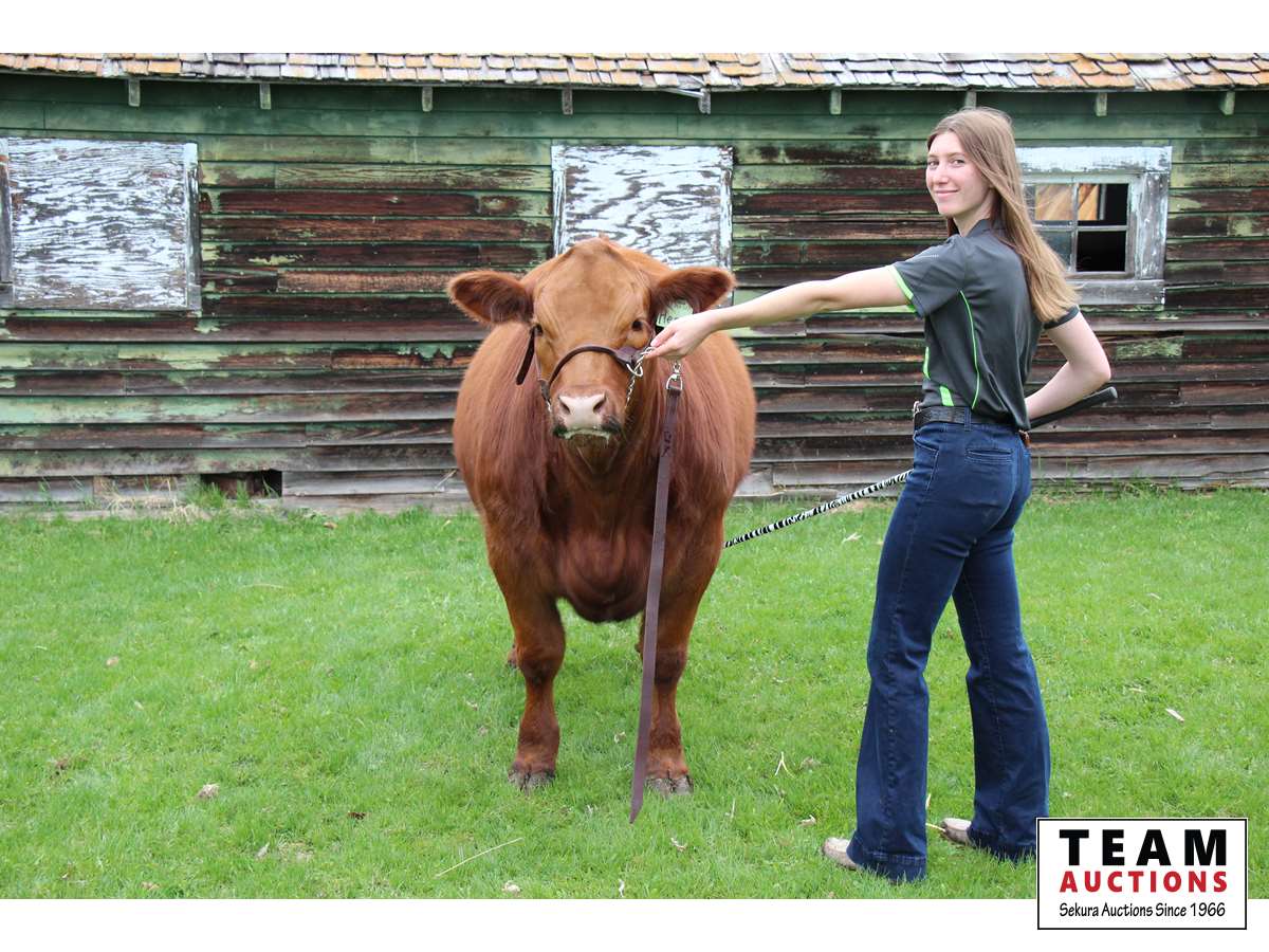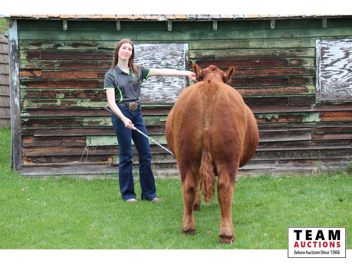 Hello I'm Leah Churchill, a Sr at the Cherhill 4-H Multi Club. This is my Market Steer Henry, he is set to weigh approximately 1200 lbs sale day. I have a butcher spot booked at Schleckers Custom Meats June 9th, located west of Stony Plain, for my buyers convenience to use if they choose. Henry has been raised on a barley and Country Junction ration diet, and is ready to find his forever home...in your freezer. He is a commercial angus from our home herd. The profit made from Henry will be spent immediately on my tuition for University, as I am attending Concordia University this fall in pursuit of an elementary education degree. Meaning I am completing my 7th and final year of 4-H. 4-H has taught me many life skills such as bookkeeping, marketing skills, and stewardship skills. Preparing me for life in the future. I have had a lot of fun over the years with the 4-H program by attending our workshops and participating in unplanned calf wranglings. I am proud to present my final project Henry in this year's sale. Finally I would like to thank all my previous buyers over the years for your support to both my club and myself. Your contribution is greatly appreciated.