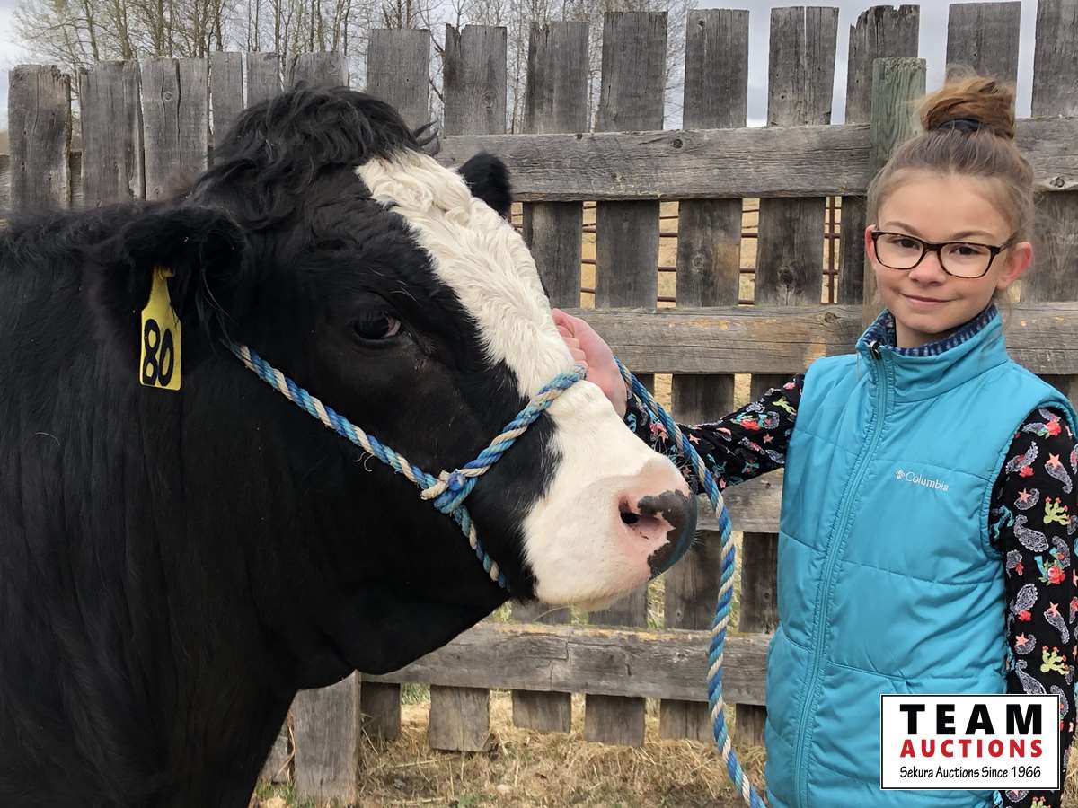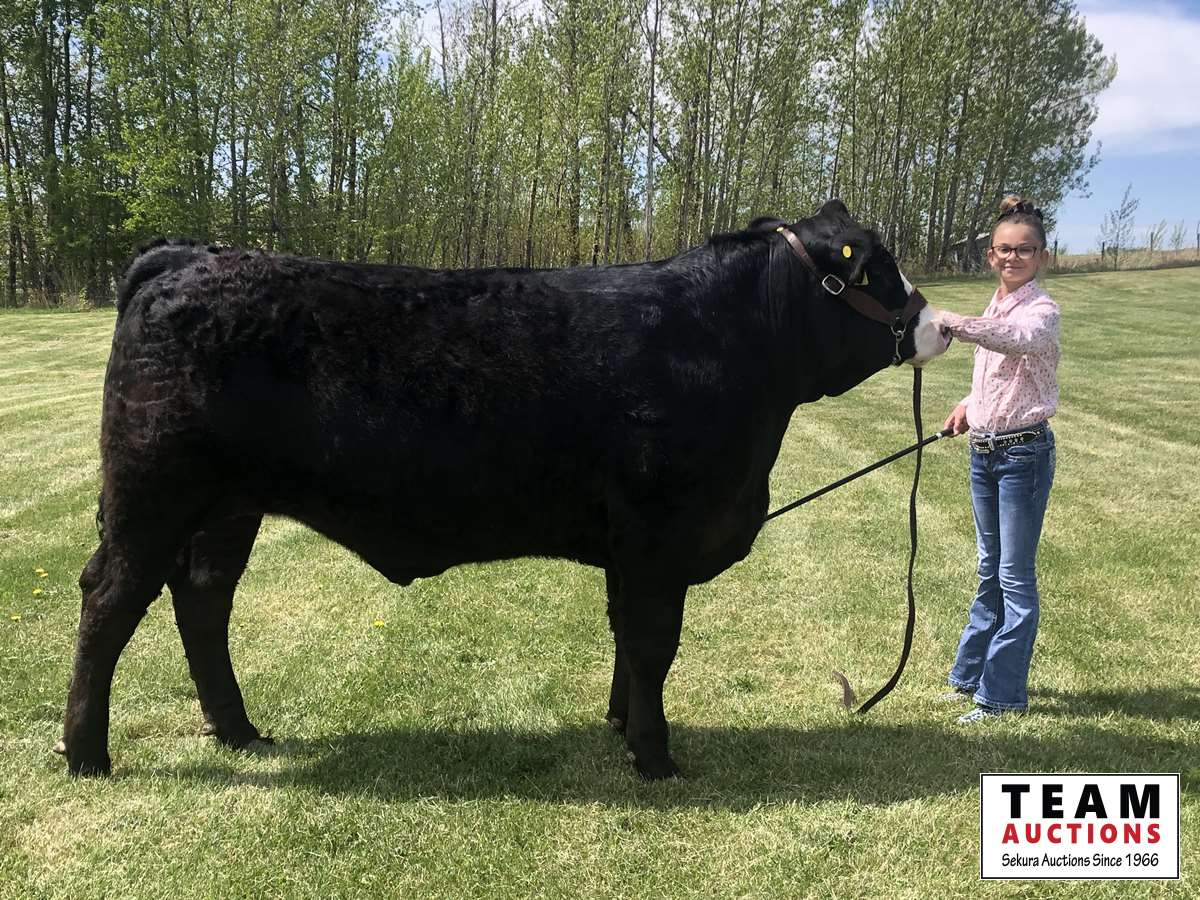 Hello, my name is Rayel Chittick. I am a member of the Anselmo Willing Worker’s 4-H Club and this is my second year in 4-H. Over the past two years, 4-H has taught me many valuable skills such as public speaking, bookkeeping, judging and volunteering. I have attended events at the club, district, regional and provincial level either in person or virtually and have learned a lot of valuable knowledge and skills from them. This year, I am in Grade 5 at Elmer Elson Elementary School in Mayerthorpe. Most of my free time is spent doing things on the farm, spending time with my animals, reading and drawing. I also take horseback riding lessons and play softball. Jet is my market steer project this year. He is a Black Angus Simmental Cross that I picked from our family herd. If you are looking for some tasty beef for your BBQ then Jet is the one for you! If needed there is a butcher spot booked for mid June.