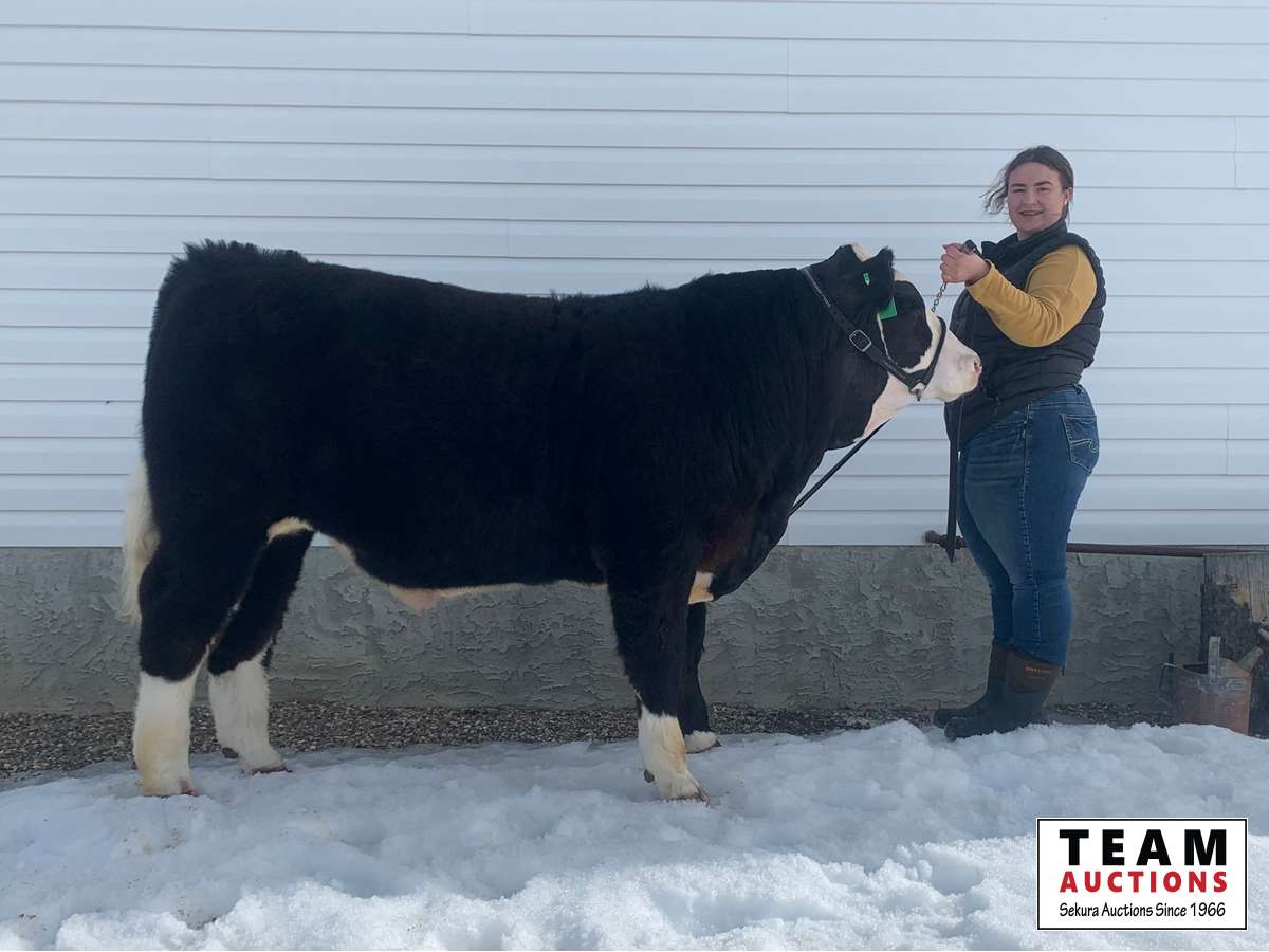 My name is Bailee Richardson, and this is my 7th year in 4-H and the 5th Market steer that I raised. Yeehaw is a Simmental X Angus, he was born on April 2, 2020. His weaning weight that fall was 700 lbs. I'm proud to say I purchase grain from a local farmer to roll myself in order to form the perfect ration for my steers. Completing multiple years in the 4-H Beef program has given me the opportunity to experiment with different breed characteristics and feeding techniques, and so I'm happy to have produced each steer with lots of love and countless hours of dedicated time. 4-H has given me the opportunity to look in many directions, and I'm excited about my next venture this fall at Lakeland College where I'm enrolled in the Animal Science Technology: Beef Program.