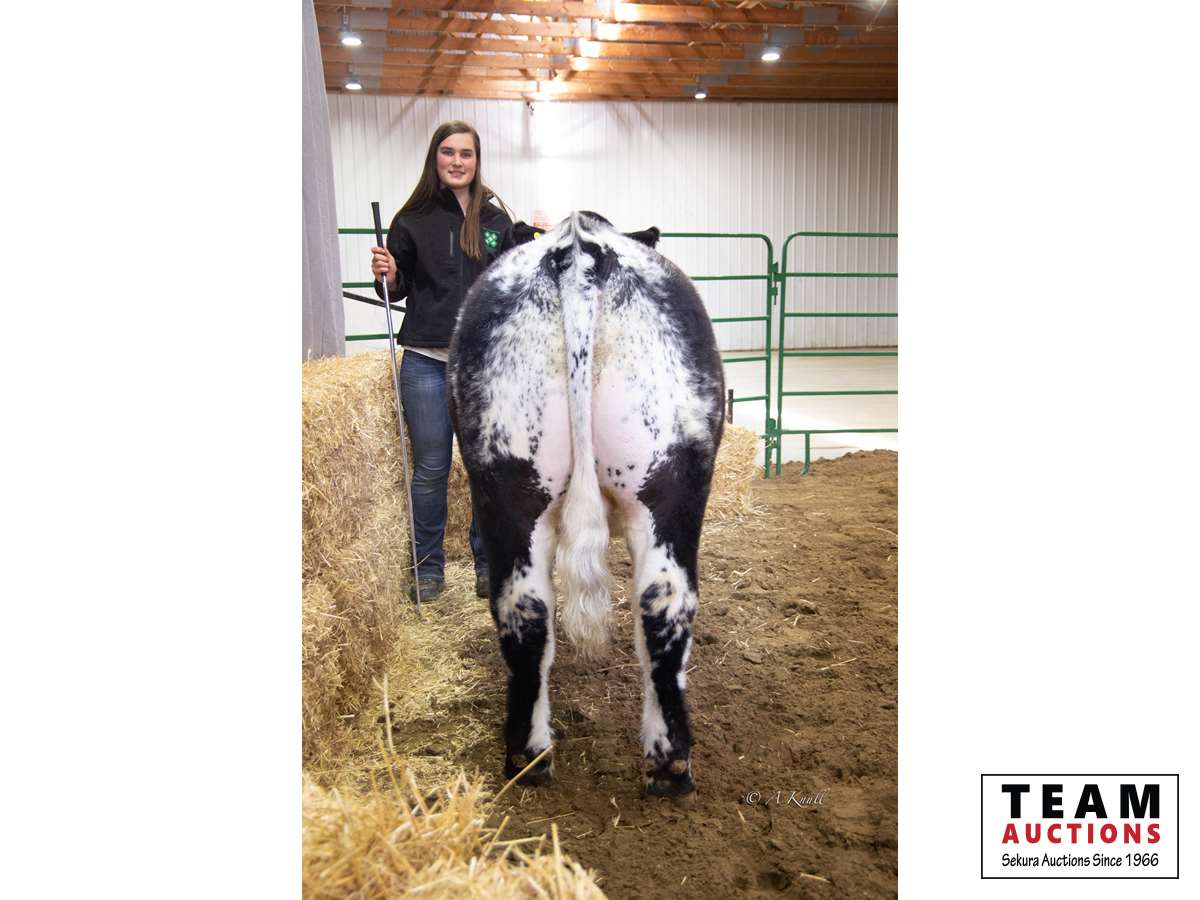 My name is Casey and this is my 5th year in 4-H. My steer is a Simmental/Speckle Park cross. Trump is exceptional for his width across the back which means all his prime cuts will be perfect. He is very well finished and his genetics will ensure that his meat is marbled to perfection. Trump is the steer for your freezer if you are looking for incredible 4-H meat.