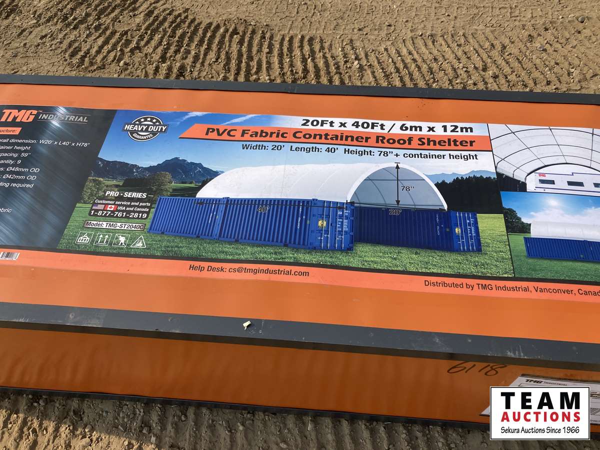 1741 TMG Industrial 20 Ft X 40 Ft PVC Fabric Container Roof Shelter (Unused)