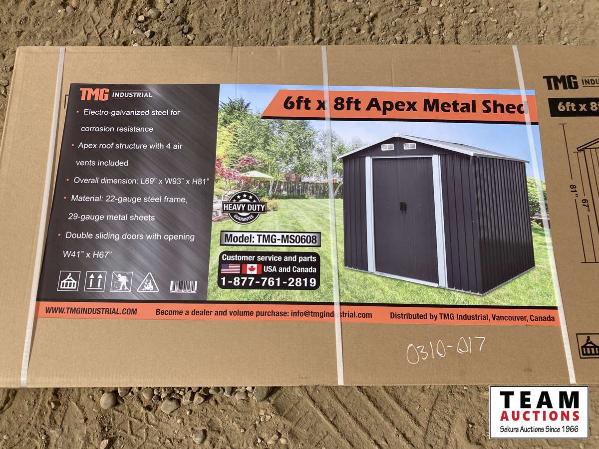1246 TMG Industrial 6 Ft X 8 Ft Apex Metal Shed (Unused)