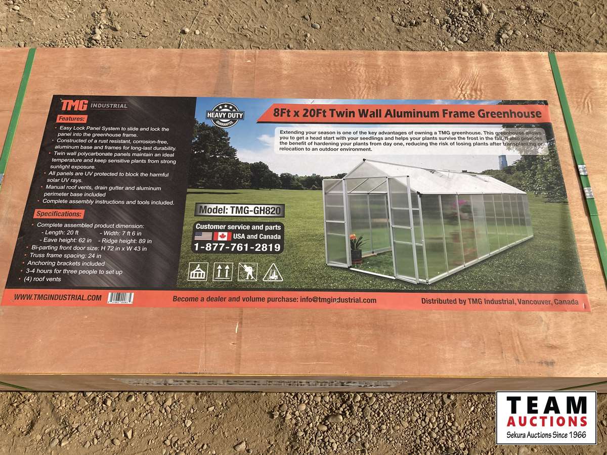 1238 TMG Industrial 8 Ft X 20 Ft Twin Wall Aluminum Frame Greenhouse (Unused)