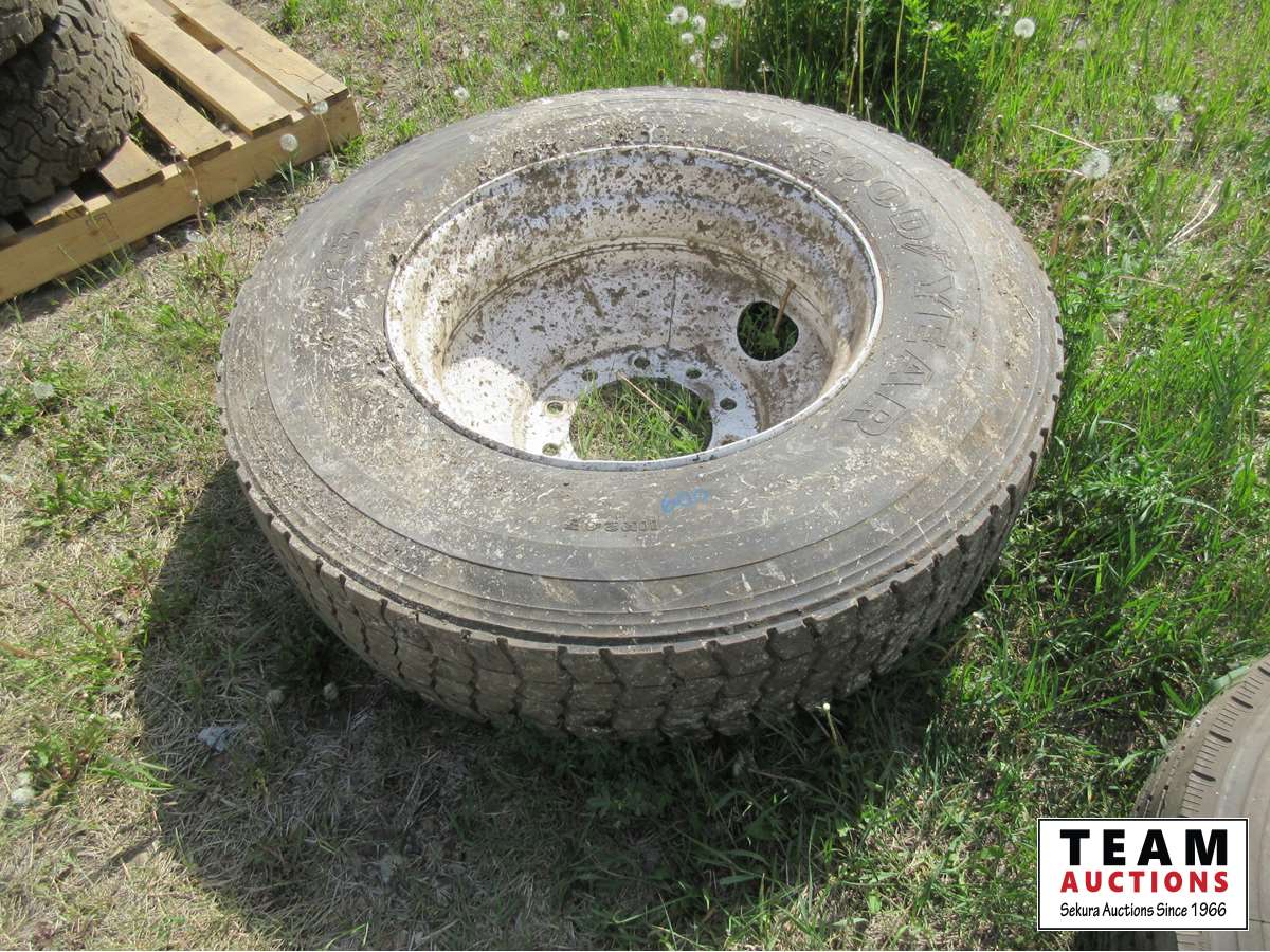 64 (1) Goodyear 11R24.5 Traction Tire with Rim