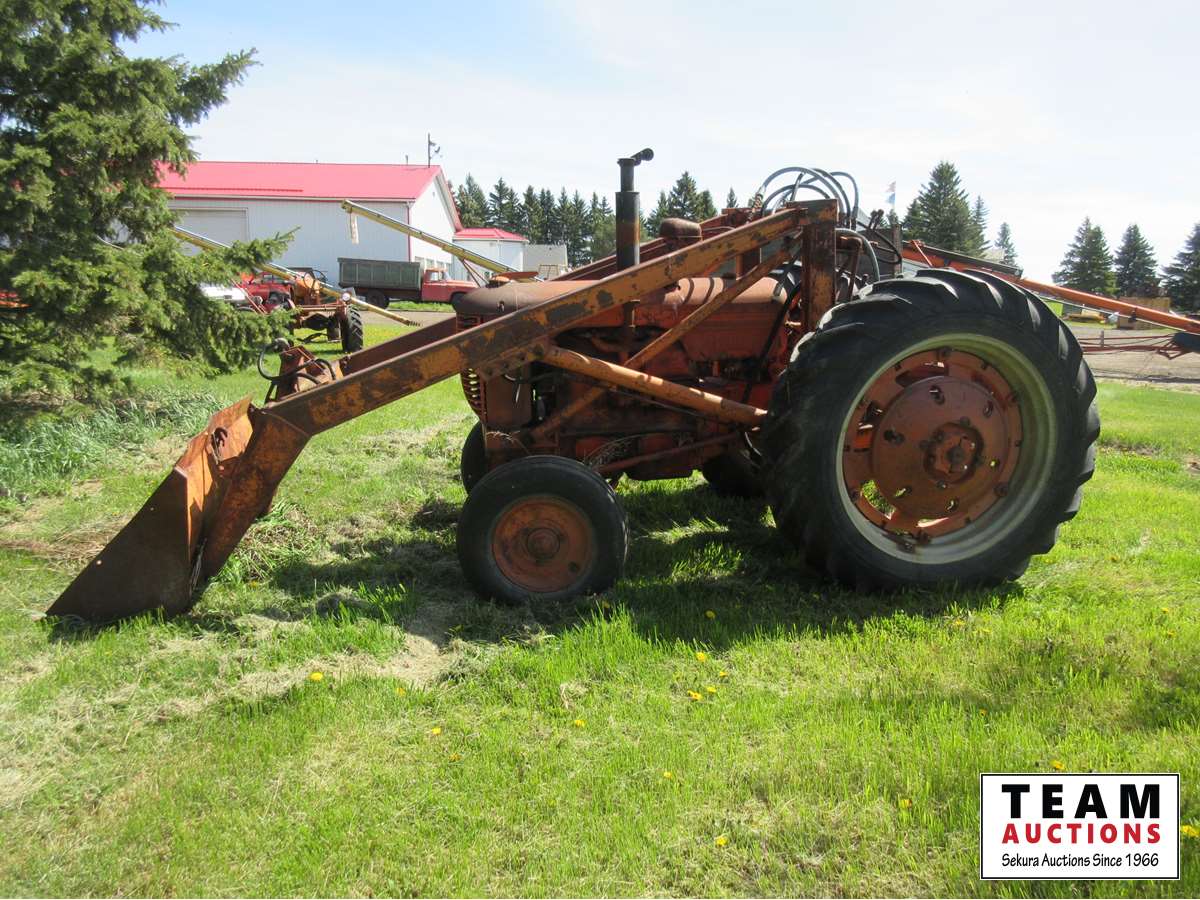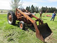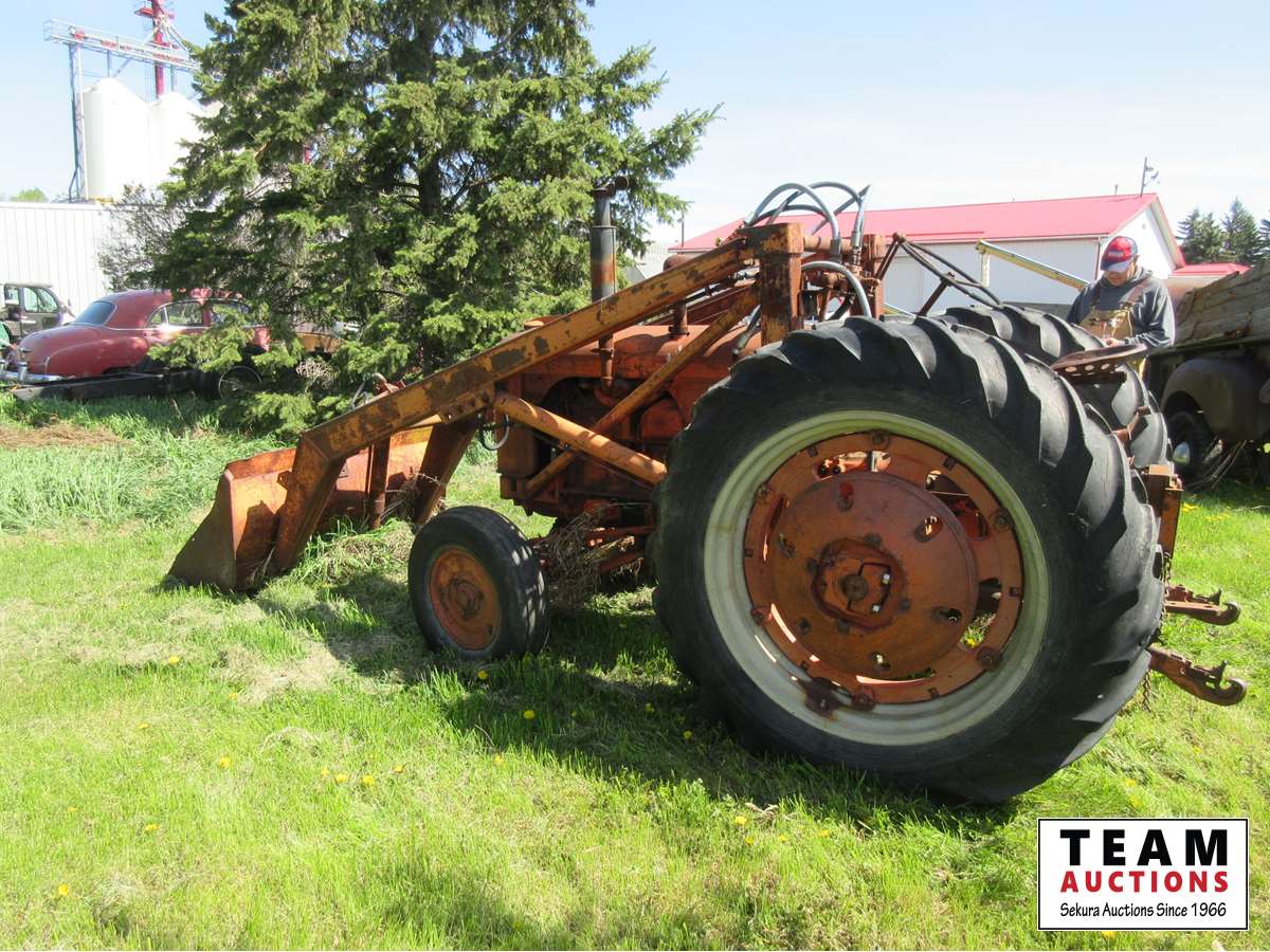 loader, bucket, 4 cylinder gas engine, hand clutch, 4 speed transmission, 3 pt hitch, 540 pto, 7.50-16 front & 13.6-38 rear tires