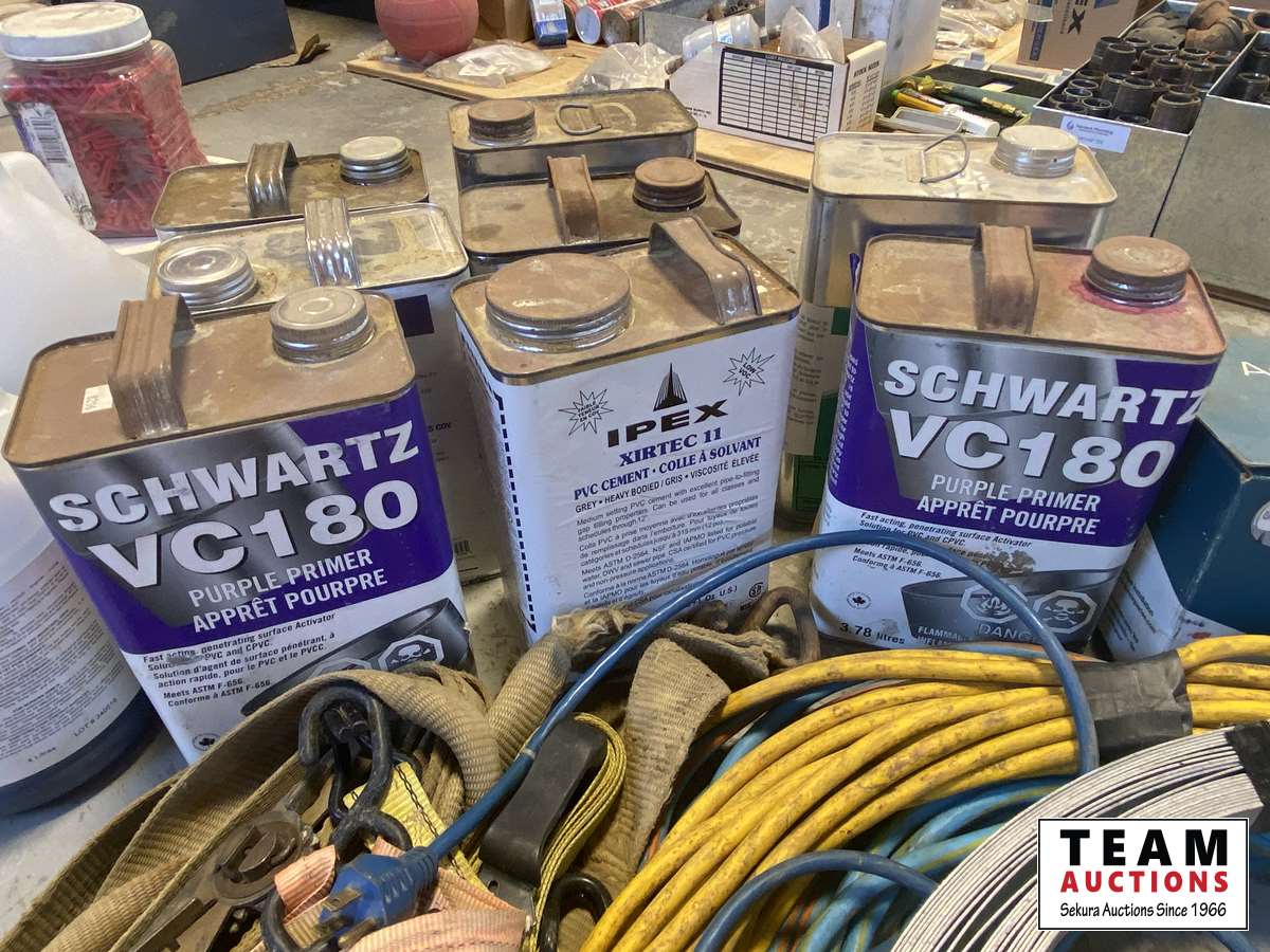 72 Extension Cords, Straps and Assortment of Primer and Glue