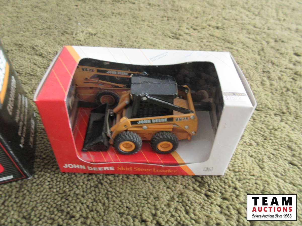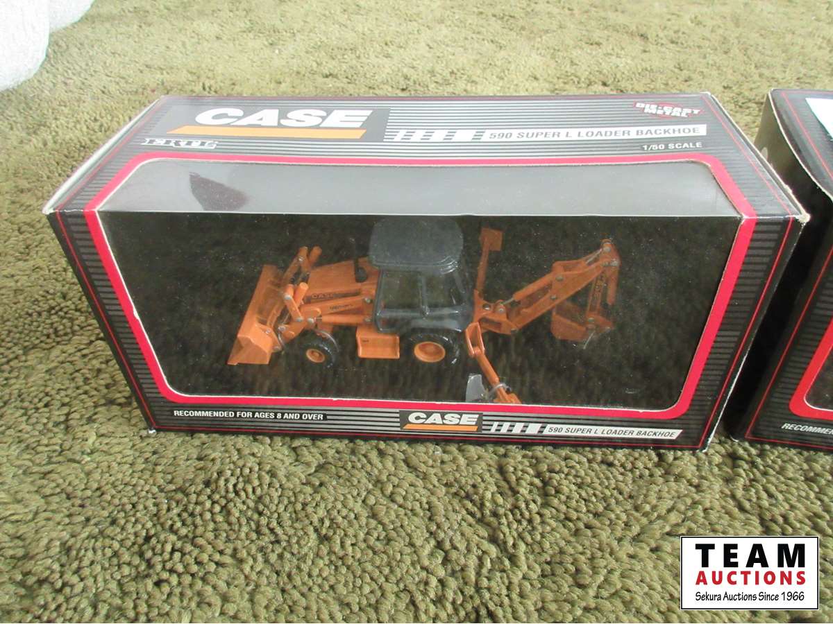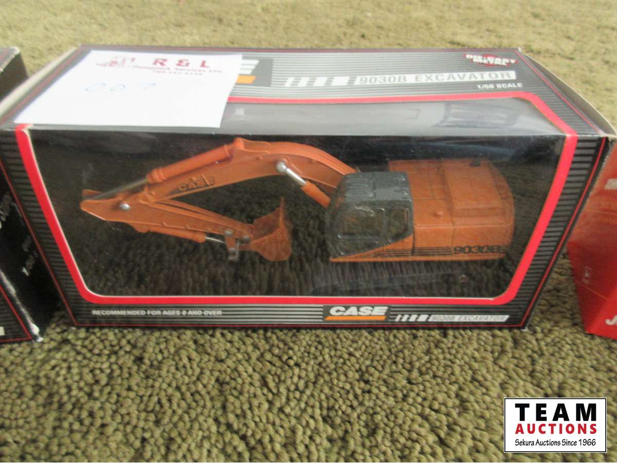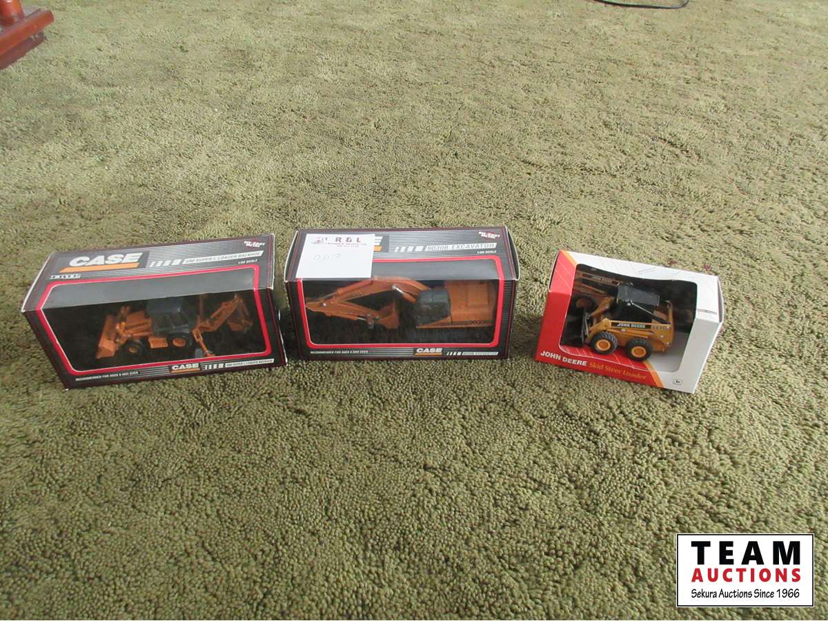 Case 590 backhoe, Case 9030B excavator, John Deere 6675 skid steer