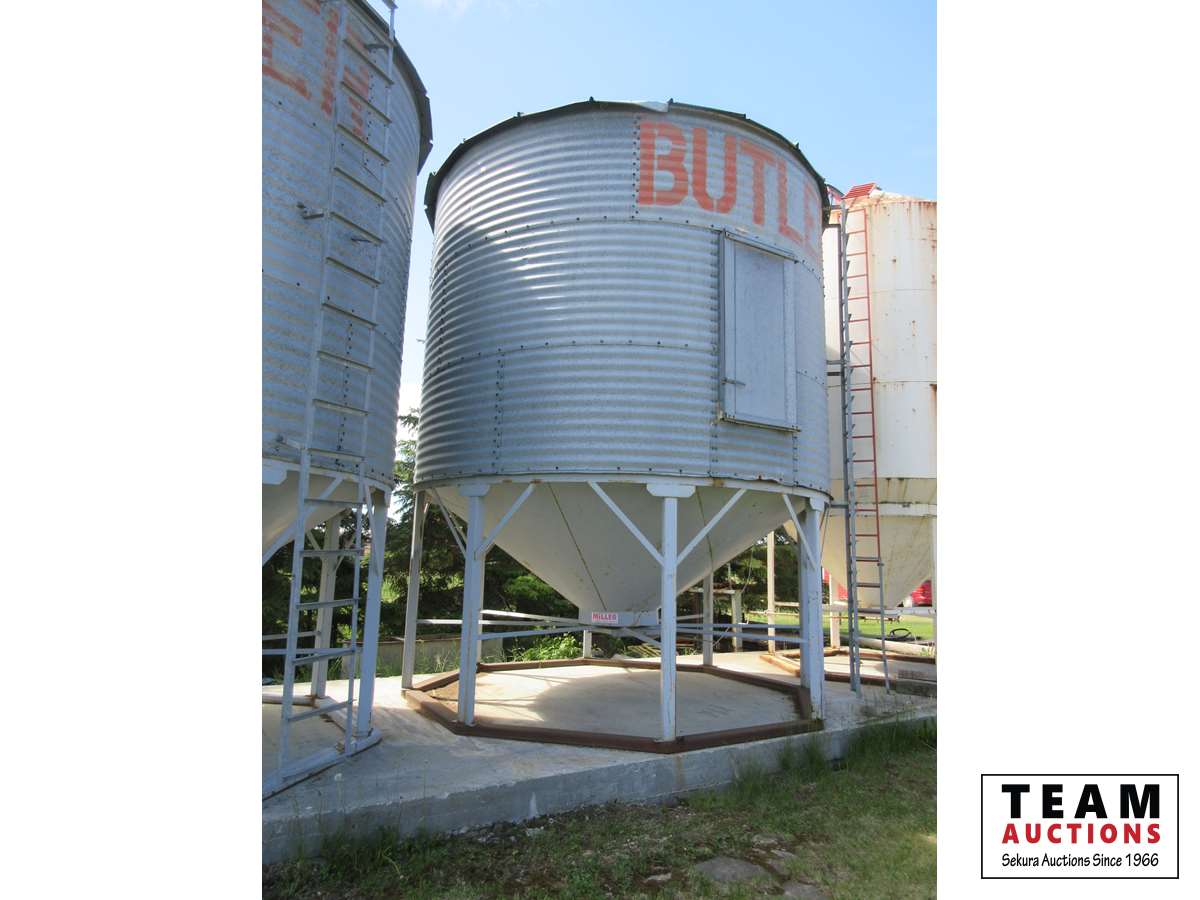 1500± bushel cap, 8 leg Miller hopper, single steel ring foundation, ladder