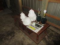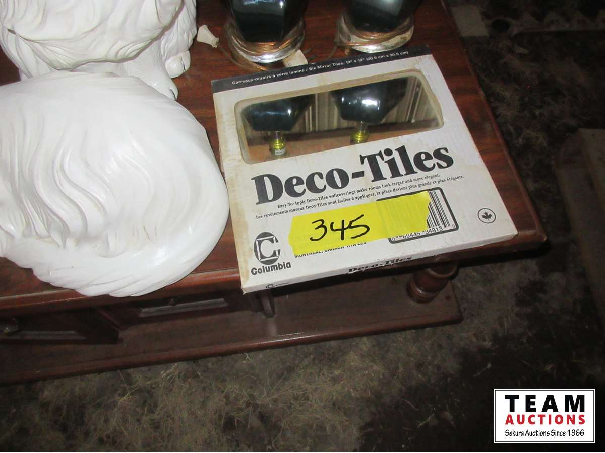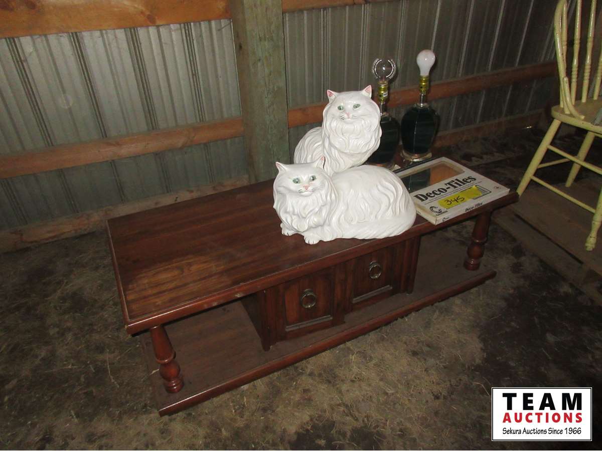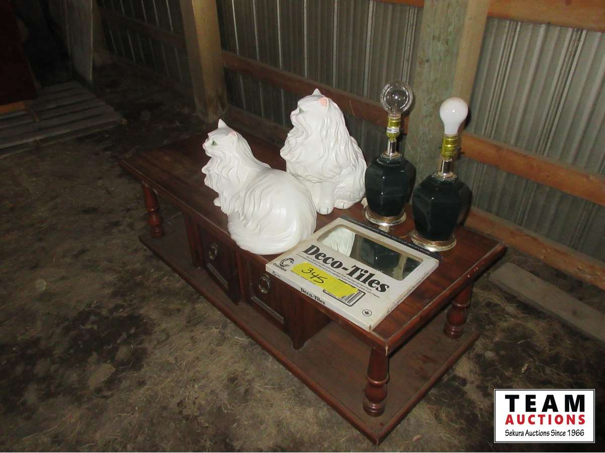 (2) cat ornaments, deco tile, (2) lamps with no shades