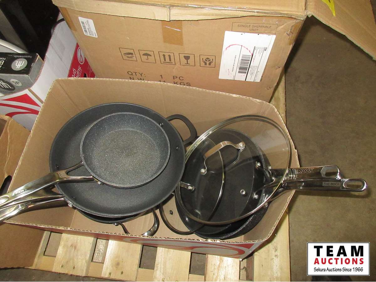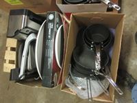Frying pans, electric grill, bowls, food saver, 7 piece entertainment set, pots, miscellaneous