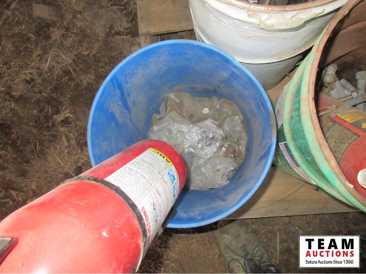 (4) fire extinguishers, cable tire chains, yard light, filters, miscellaneous fasteners