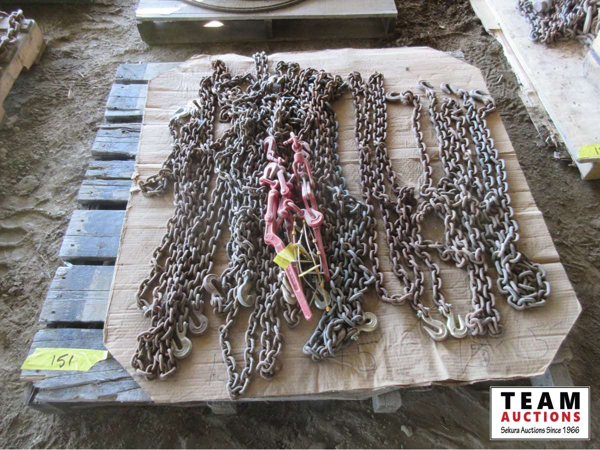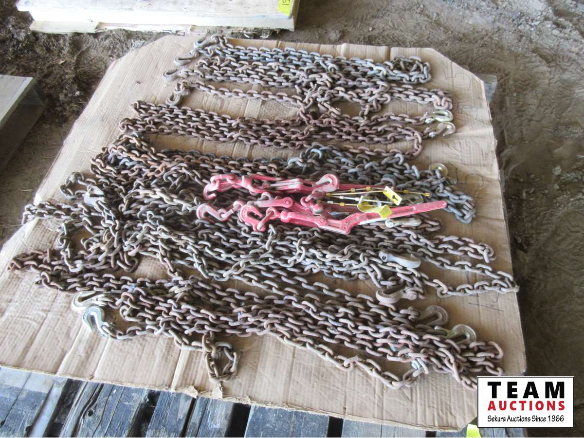 219 Pallet of Small Chains & (3) Small Lever Load Binders