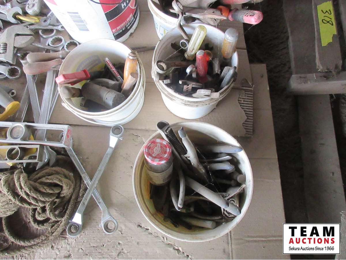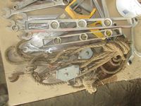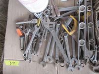 Adjustable wrenches, files, pliers, wire stretcher, miscellaneous hand tools