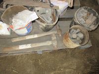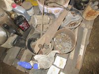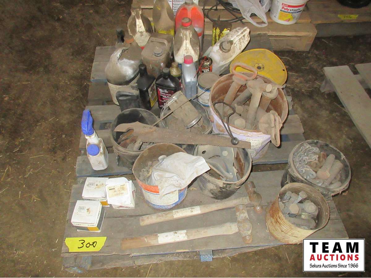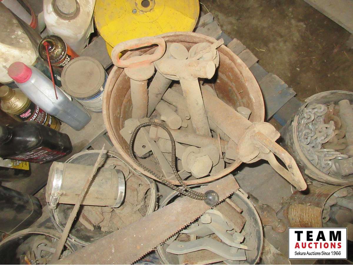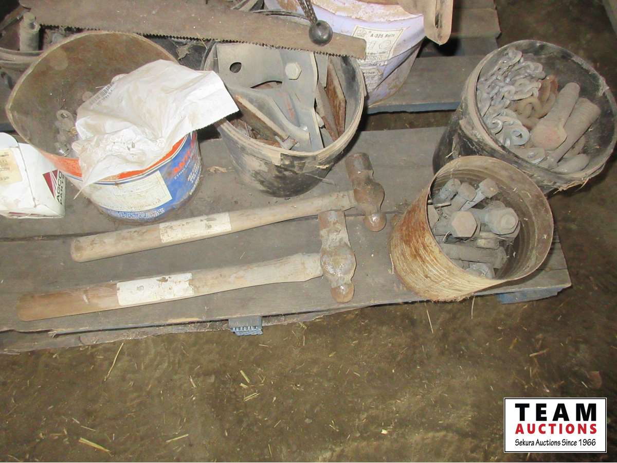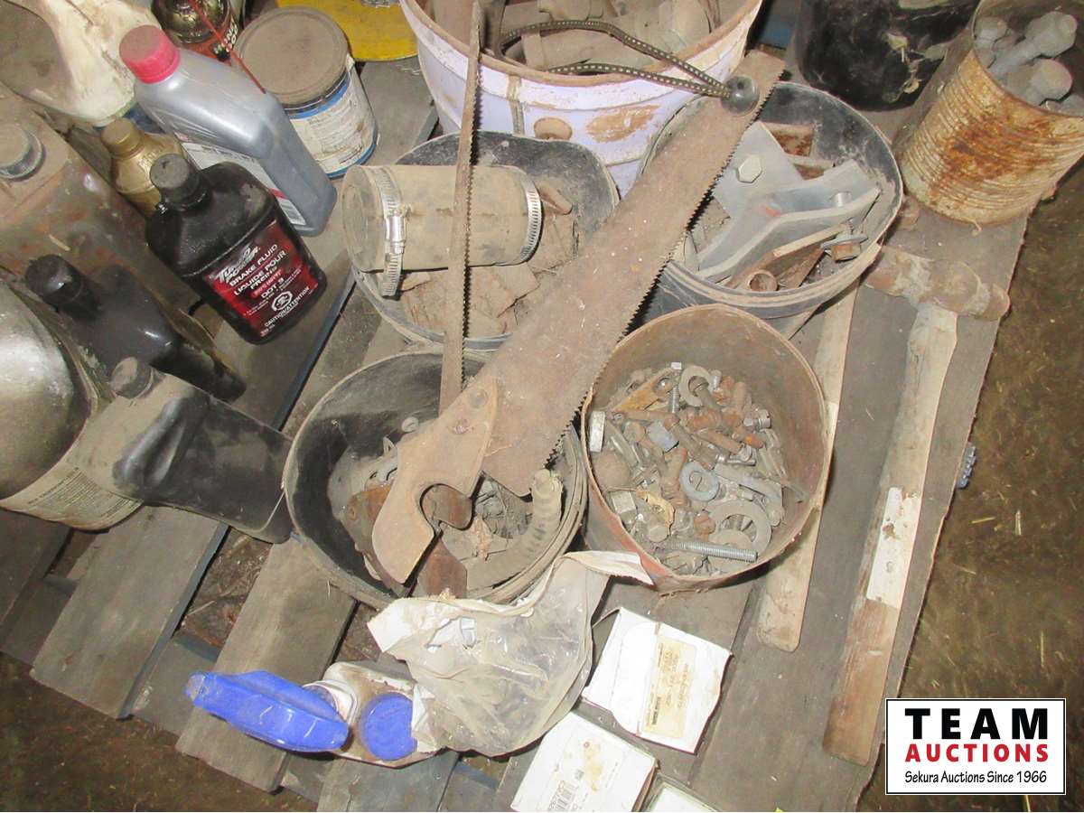 Variety of shop fluids, machine parts, bolts, hammers, saws, pins, sickle sections for 8830 Case IH swather