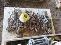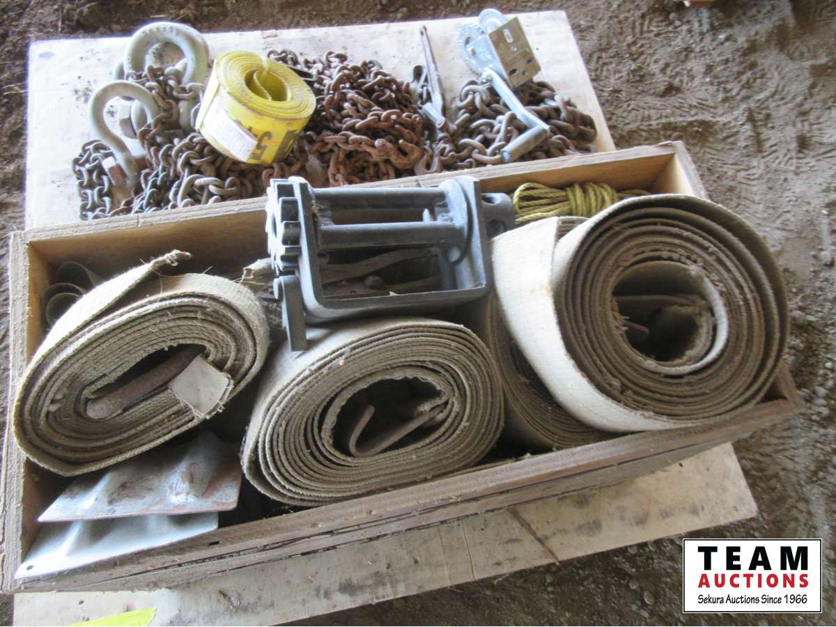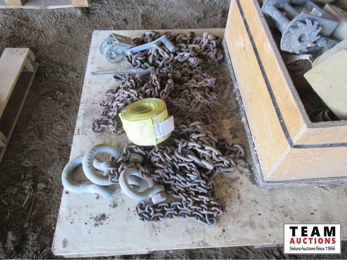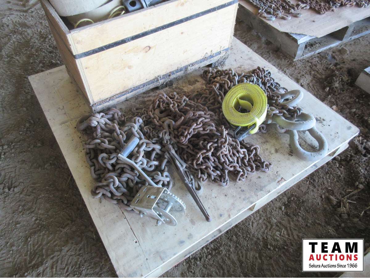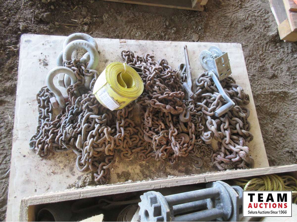 Clevises, load straps, weld on cargo winch, qty of chains, small lever load binder