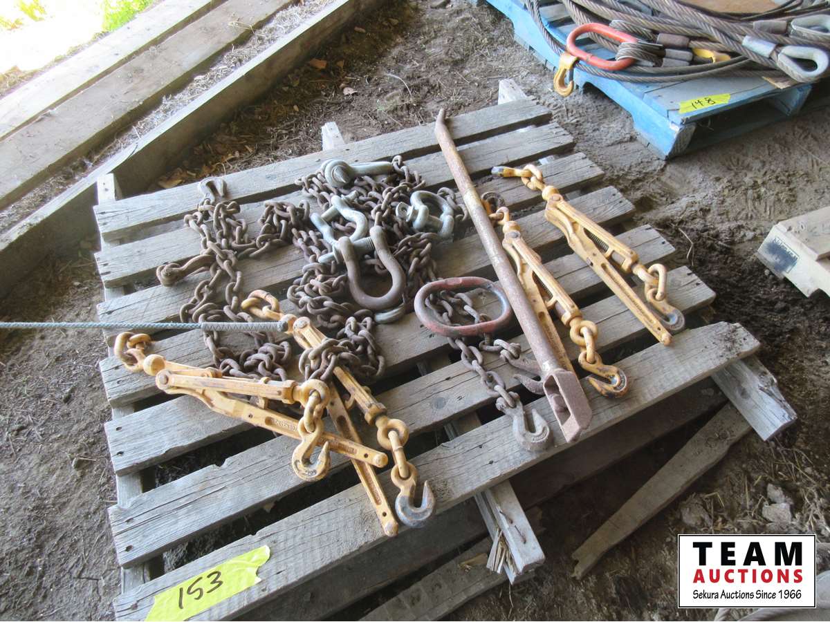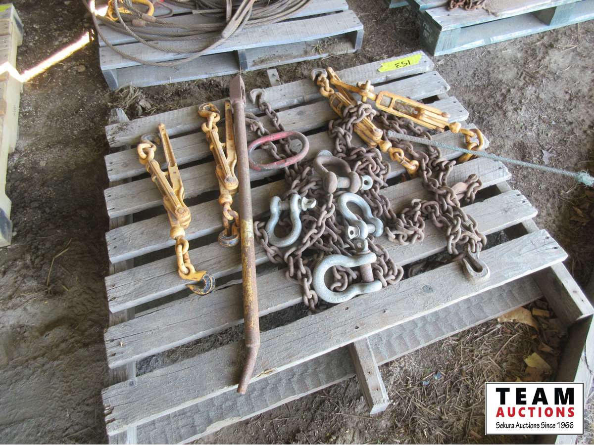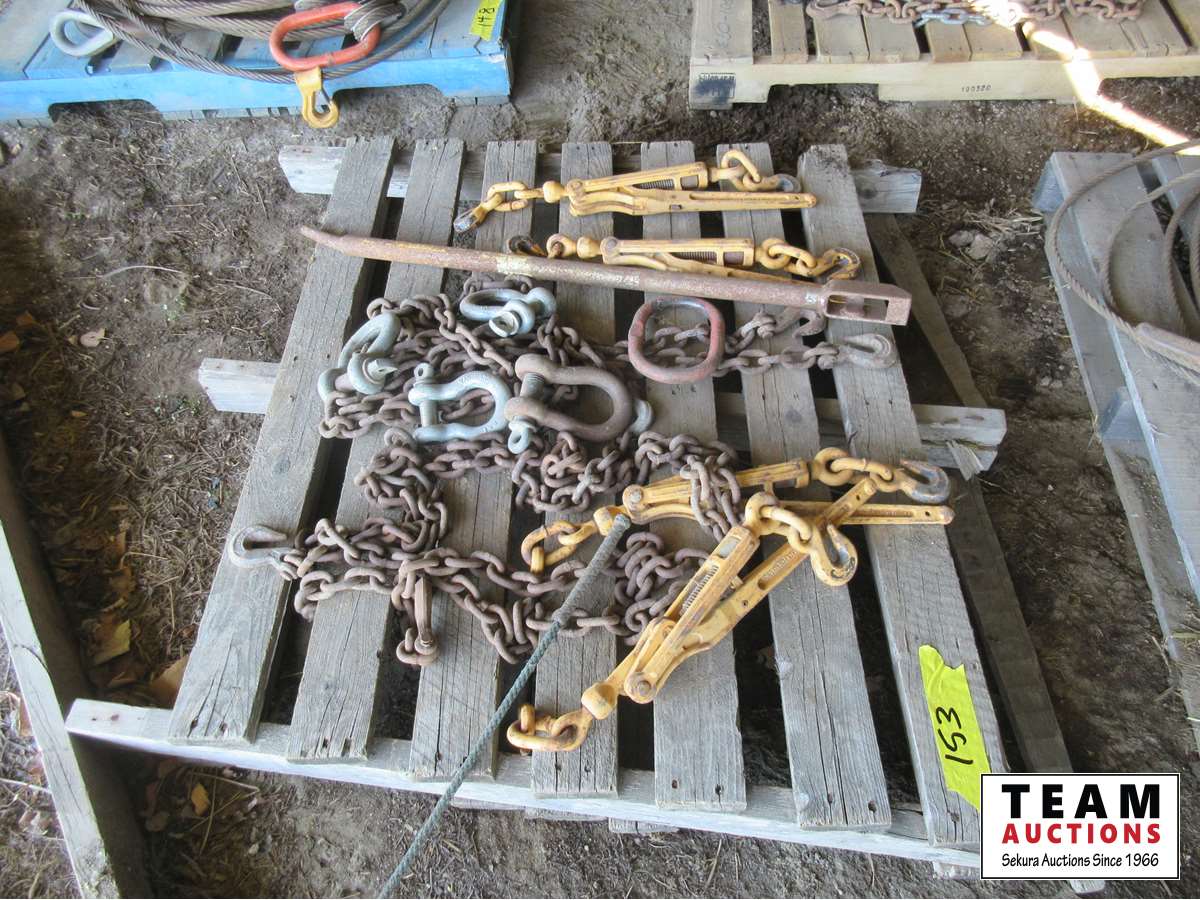 Winch bar, (4) lever load binders, (4) clevises, chain