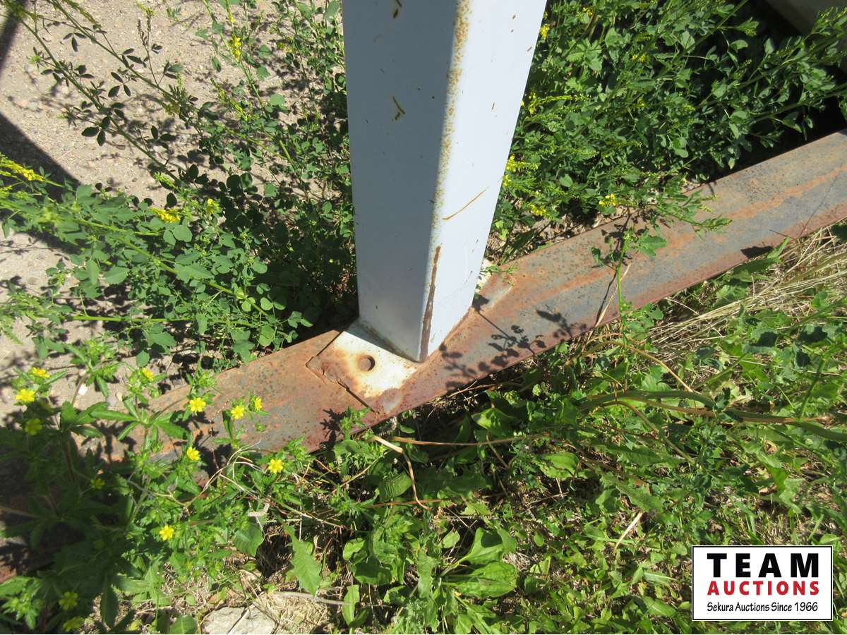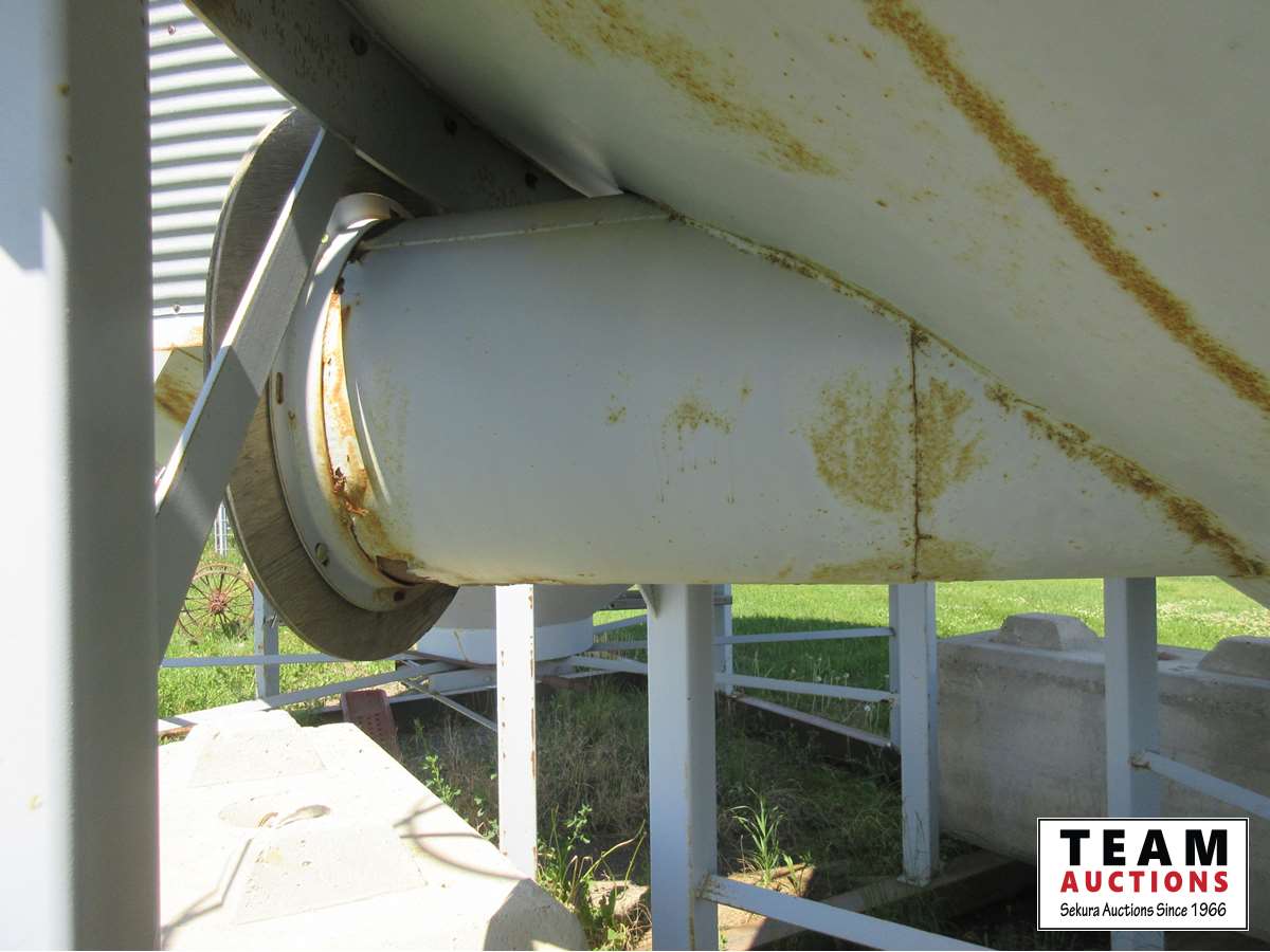 Welded to steel frame. Buyers responsibility to cut bin from frame and load out.