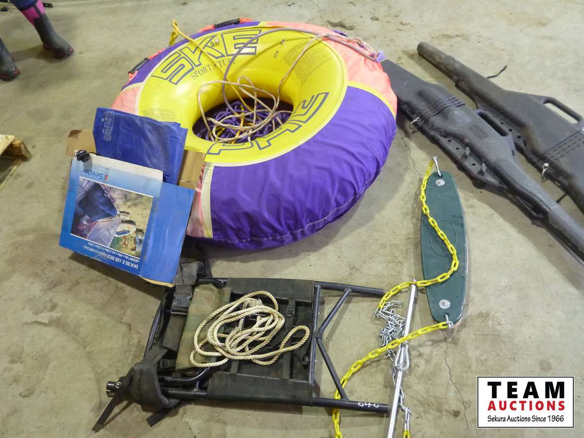 Back pack, single wake tube, double air mattress, swing seat, (2) poly gun cases