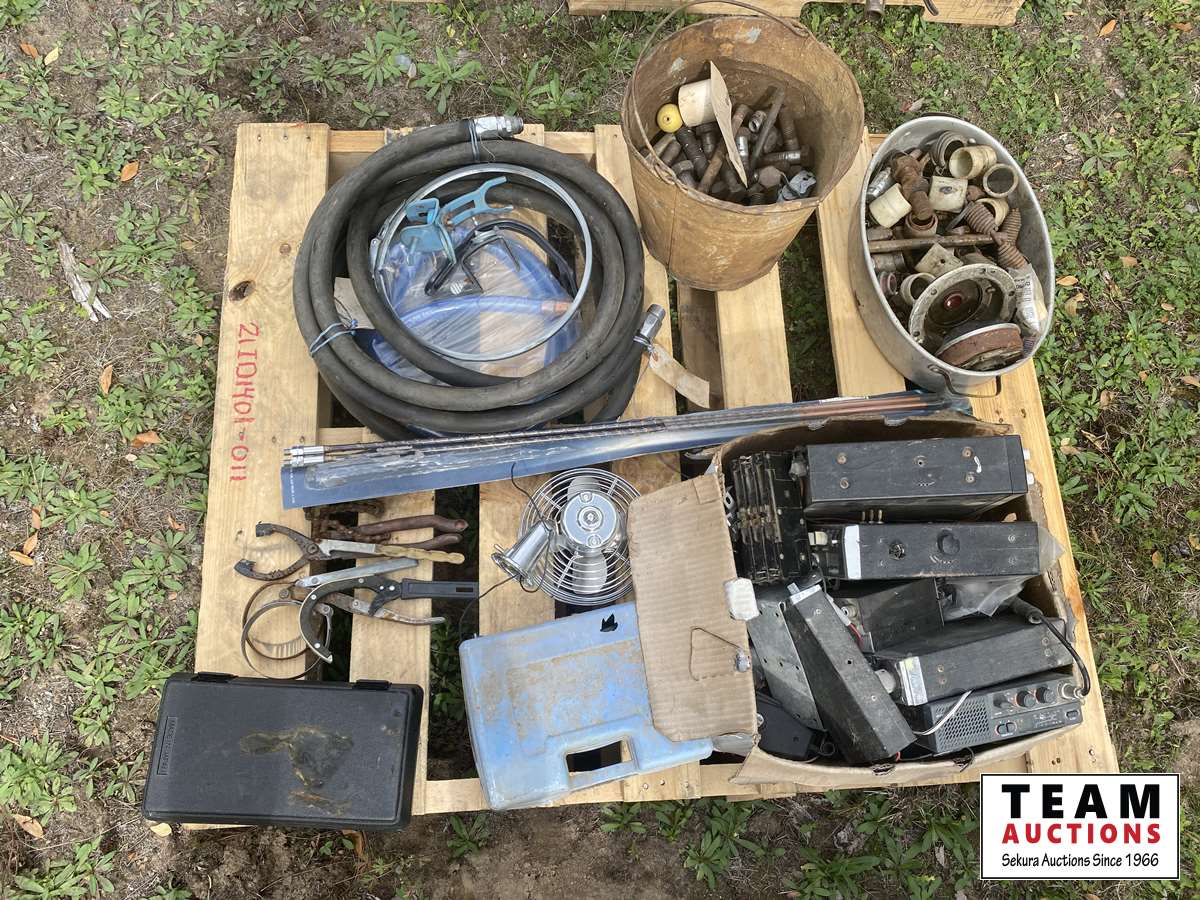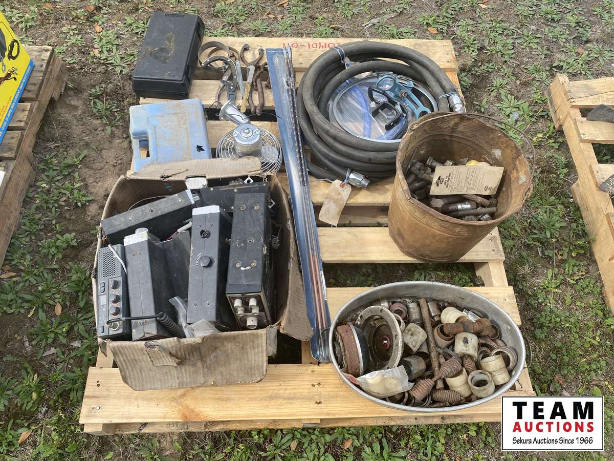 Radios, hydraulic hose, bolts, fan, etc.