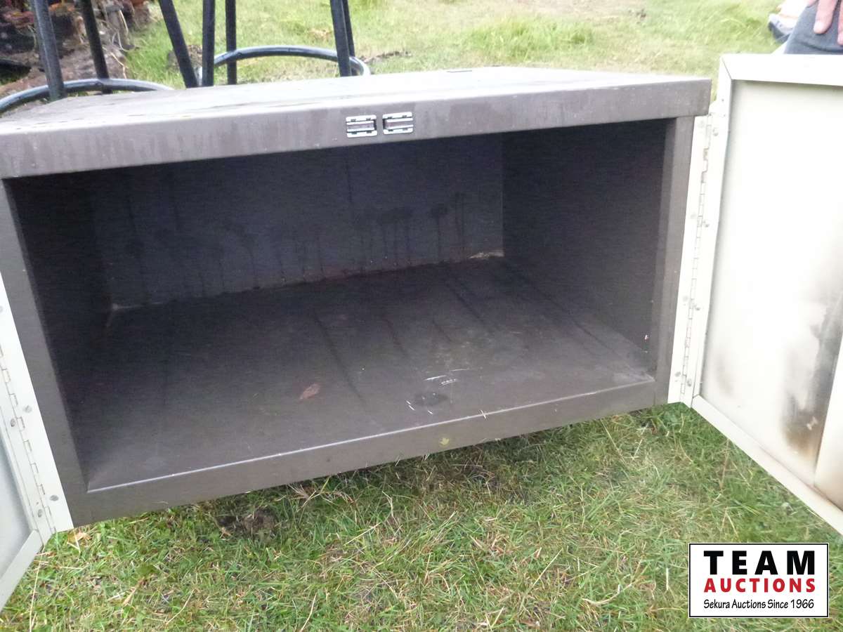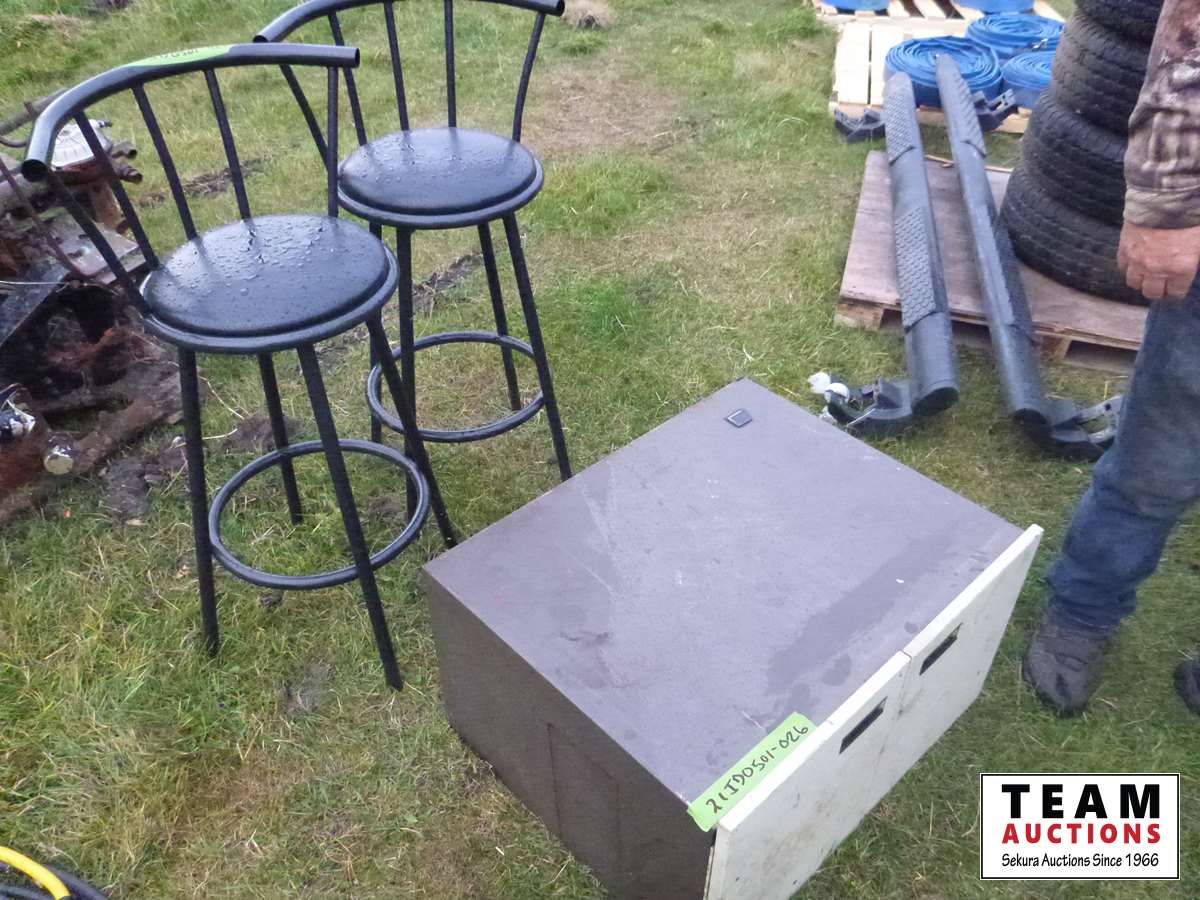 335 (2) Bar Stools & Metal Cabinet