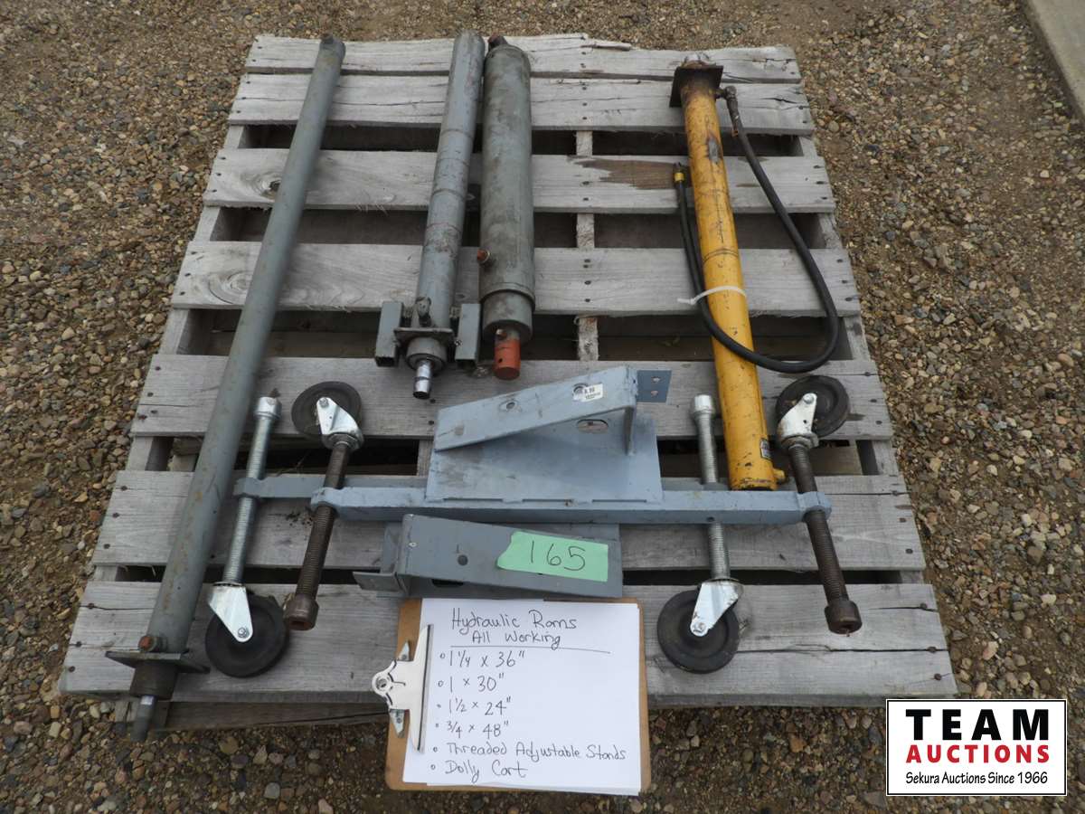 165 (4) Hydraulic Cylinders, Dolly Cart & Threaded Stands