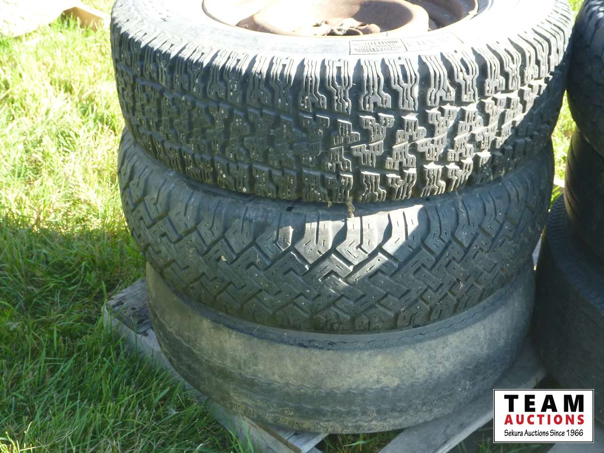 (1) 205/75R14 with rim, (1) 215/70R15 tire, (1) G70-14 with rim, (1) 14 inch tire & rim, (1) F78-14 tire with rim, 215/75R14 tire