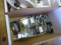 Light socket outlets, conduit elbows and parts, staples, conduit hangers, small beaker panel