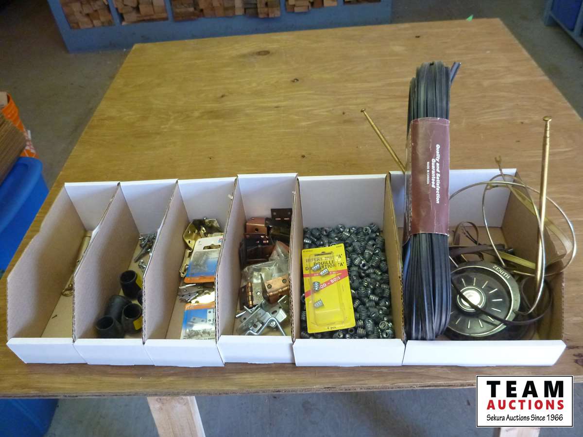 Wood insert nuts, small hinges, brass hinges, chair leg protectors, Rabbit ears, TV cable