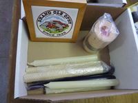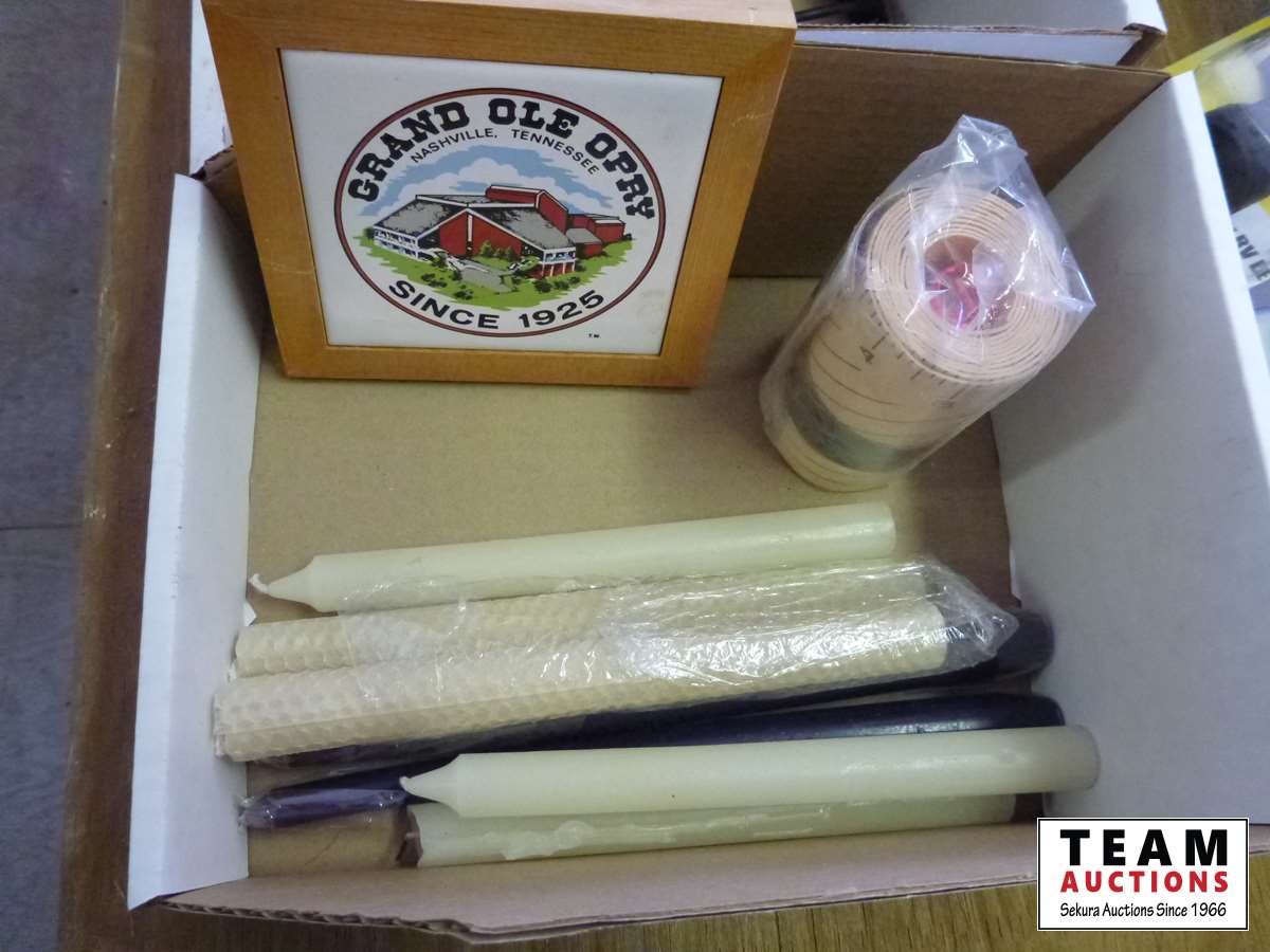 VHS rewinder, 7 way trailer circuit tester, 12 volt oscillating fan, candles, pipe lay out template, screw in dog tether, paint mixer, decorative box, (2) fans