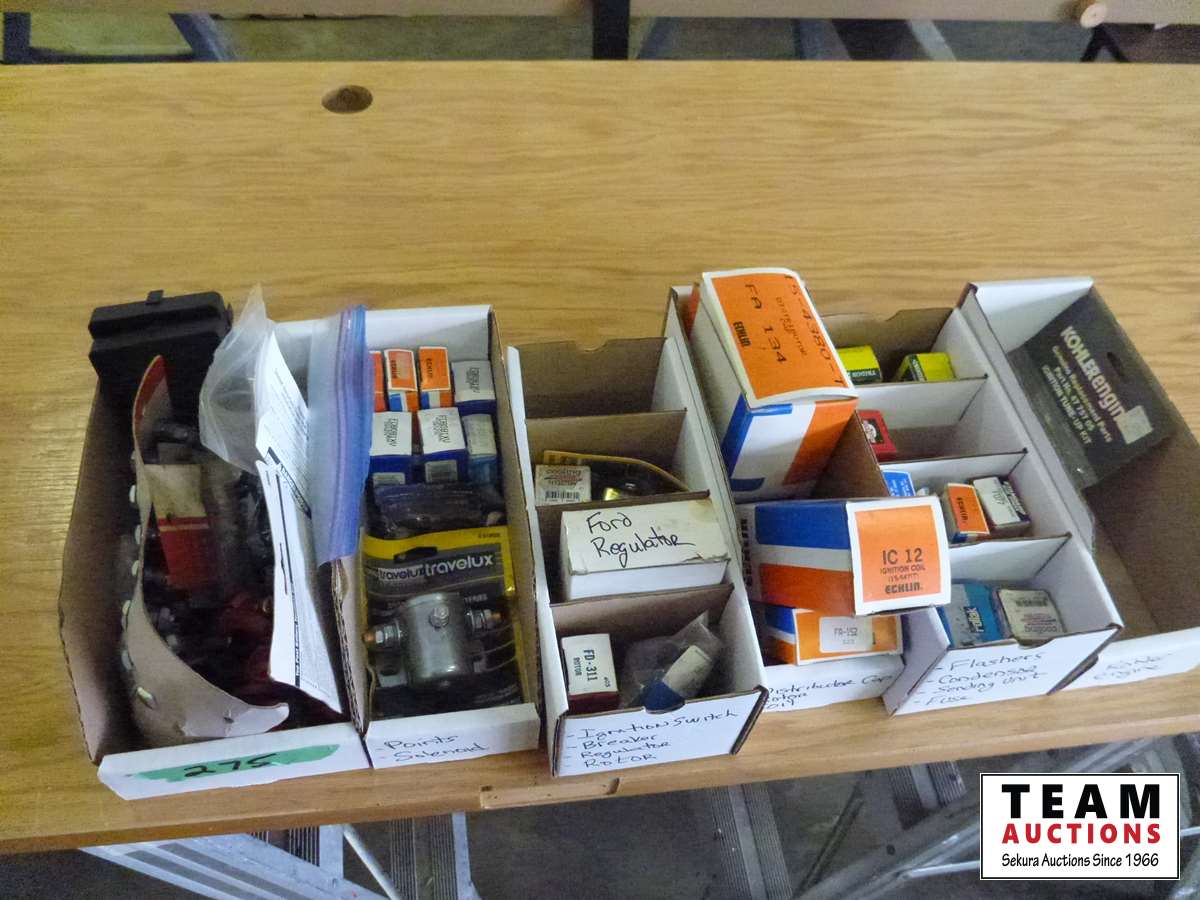Flashers, sending units, condenser, fuses, rotor, coils, points, solenoid, distributor cap, etc.