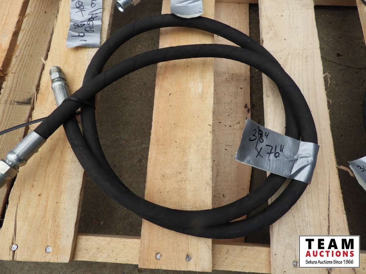 (1) new 3/8 X 76 inch, (2) new 3/8 X 32 inch, (2) 1/2 X 12 ft used once, (2) new 1/2 X 9 ft hydraulic hoses