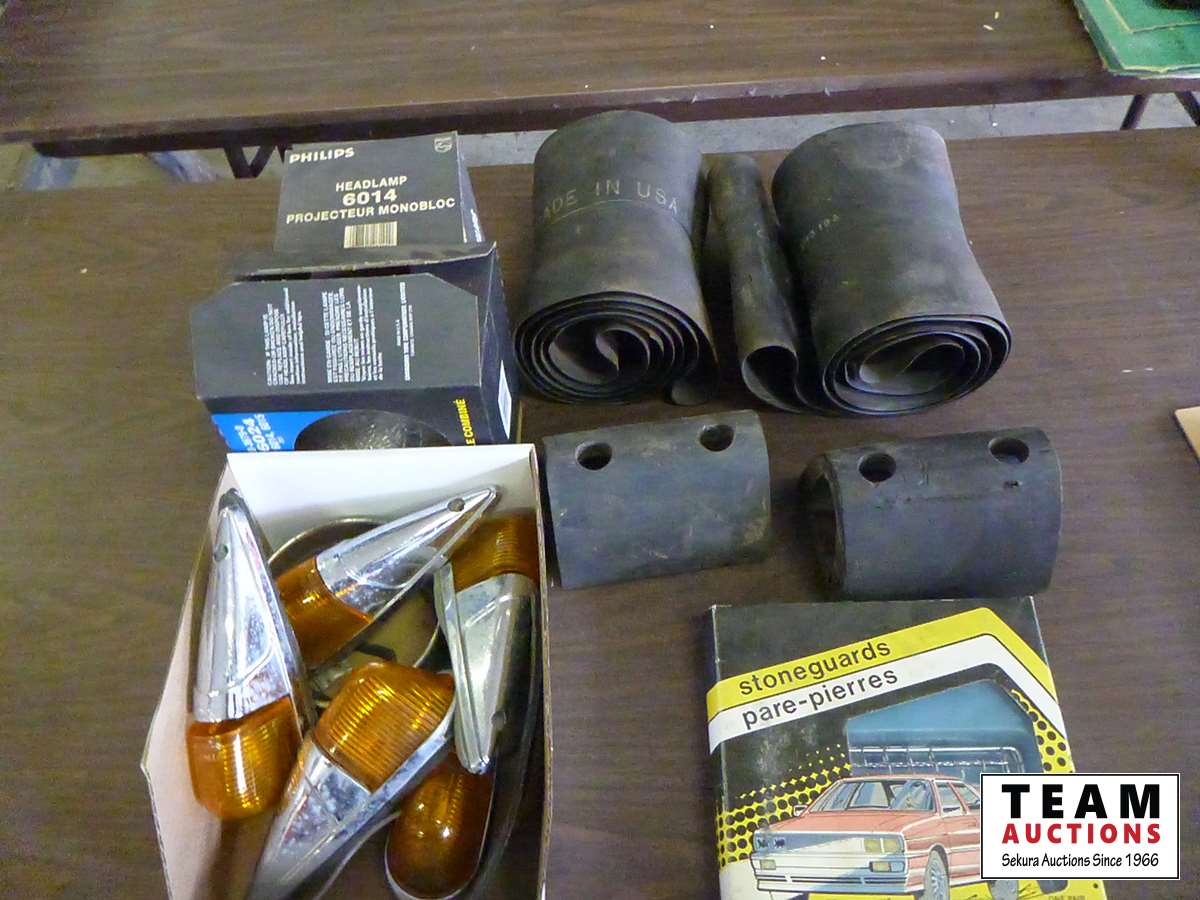 Lights, tire tube protectors, rubber trailer bumpers, headlight stone guards