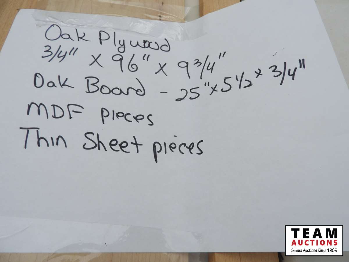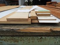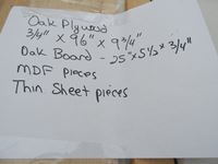 Plywood 3/4 X 9-3/4 inch x 96 inch, Oak plank 3/4 x 5-1/2 inch x 25 inch, various size MDF pieces