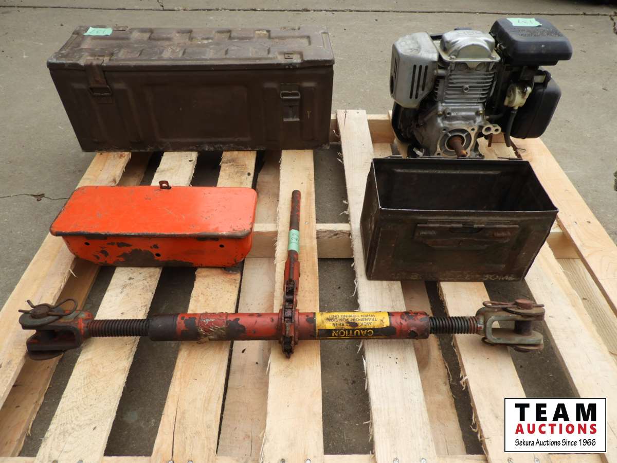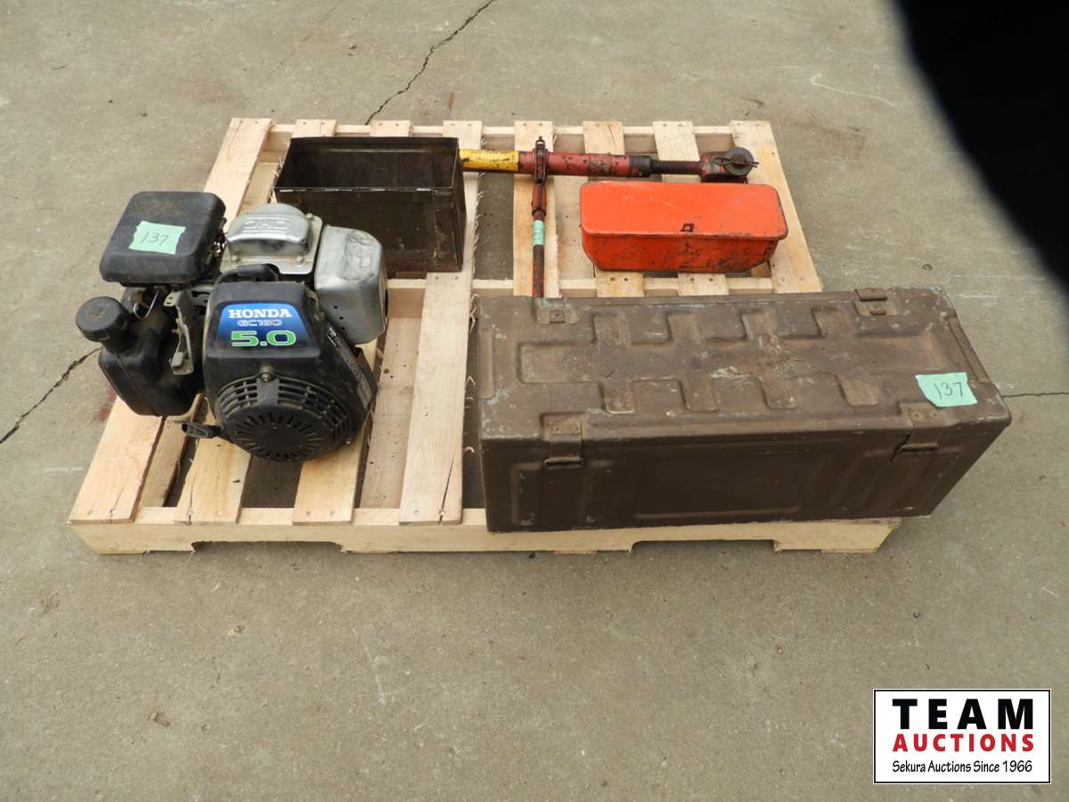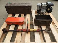 Honda GC160 engine (runs well), (3) tool boxes, (1) hitch transport jack