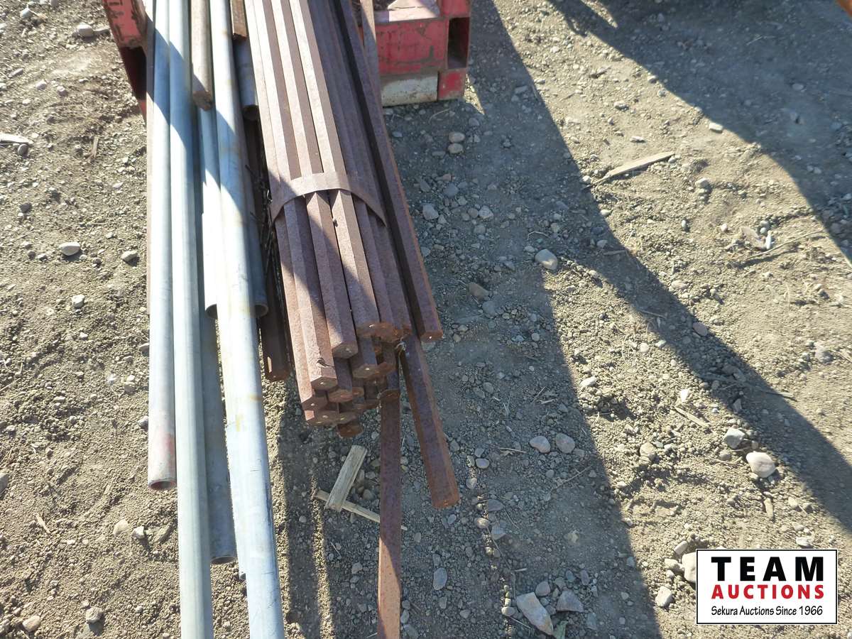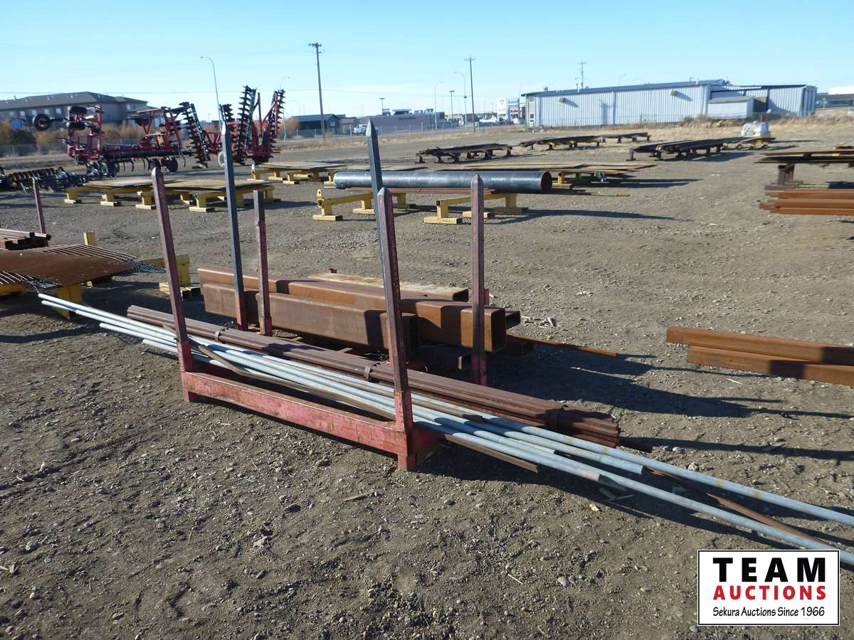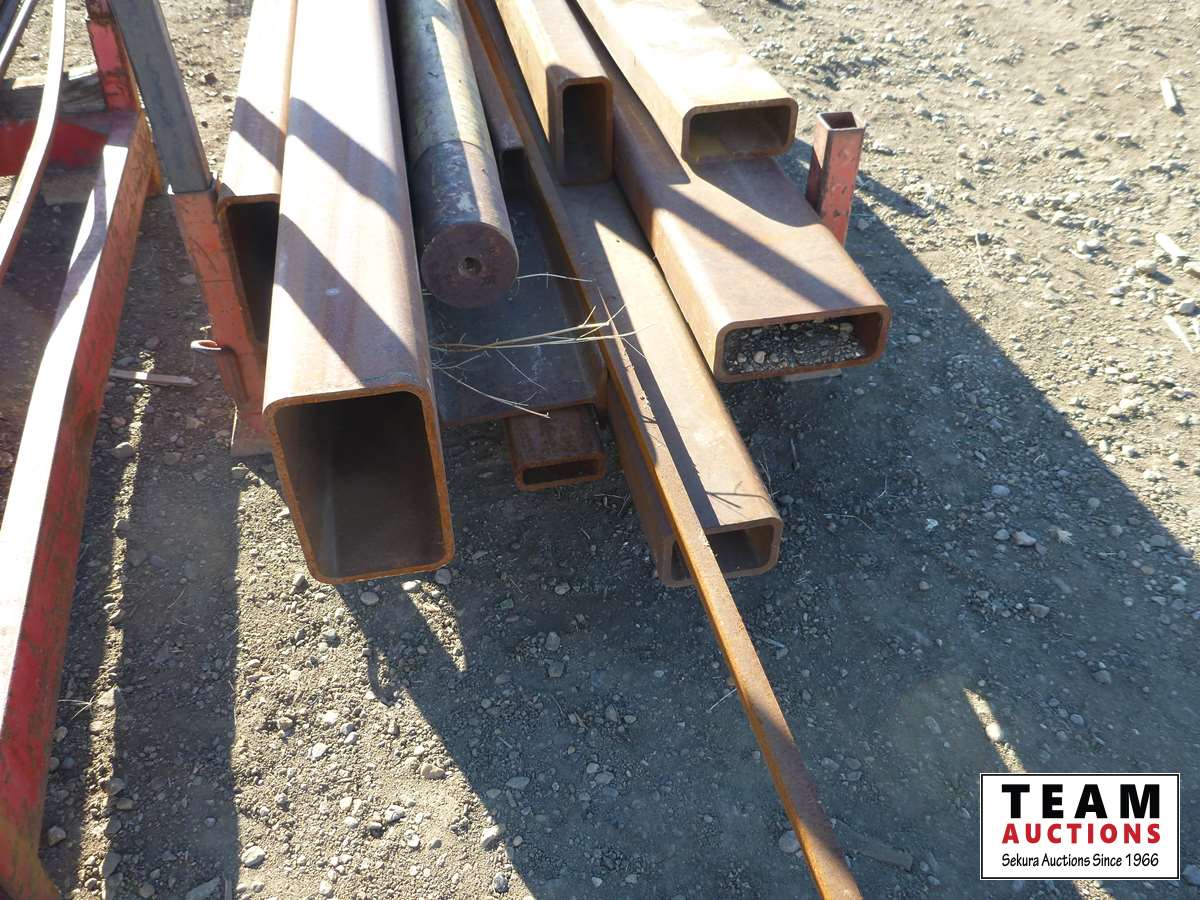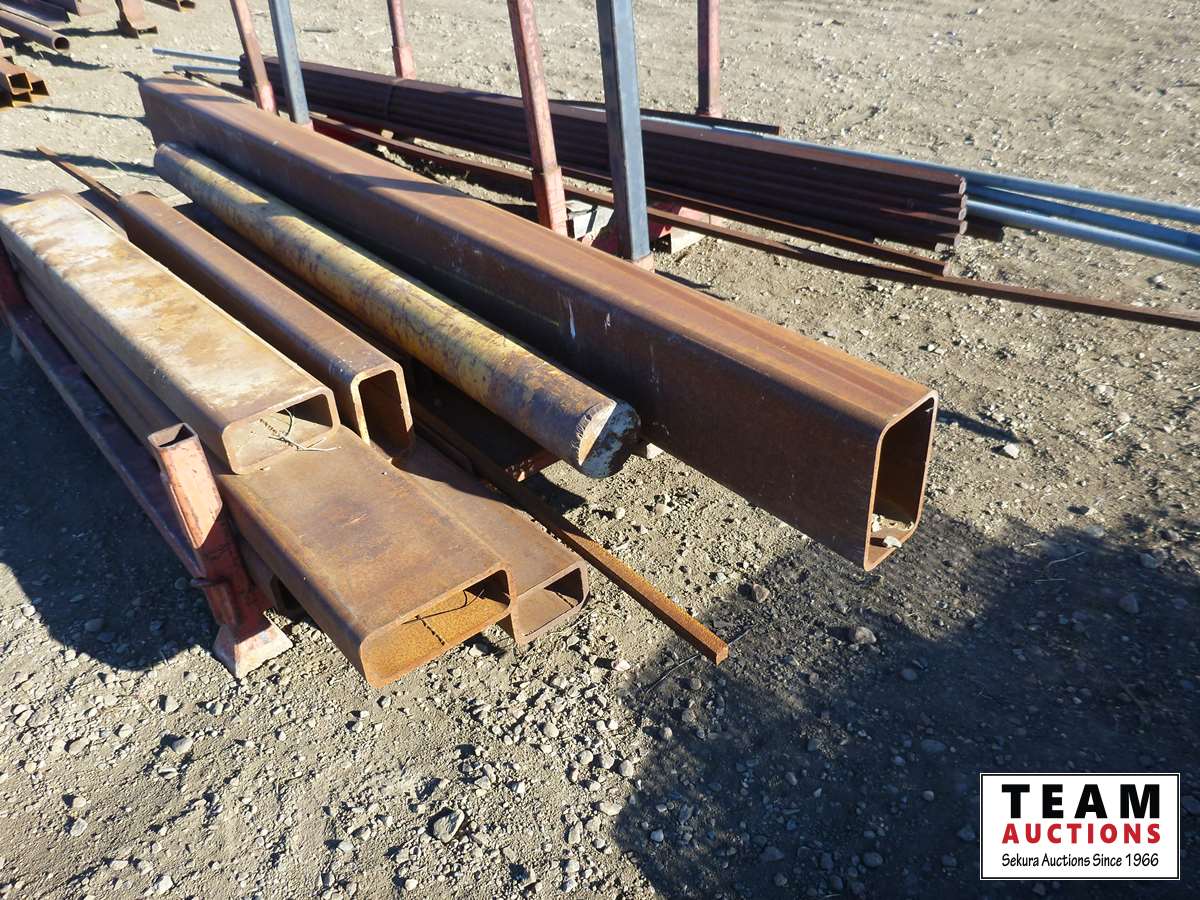 (1) bundle of 1 inch hex rod X 12 ft long, pieces of heavy wall tubing, (1) heavy shaft, (1) I beam, racks included