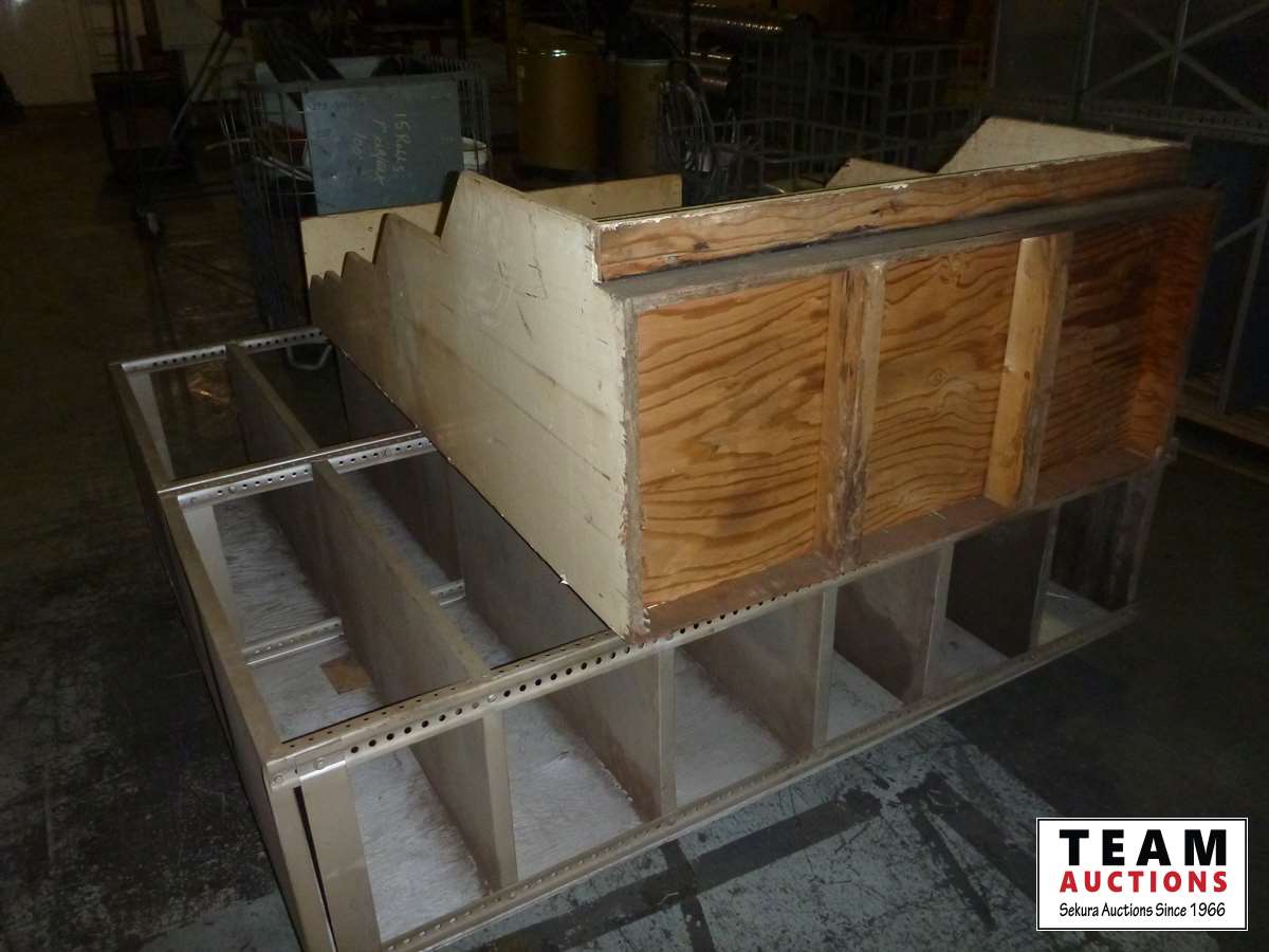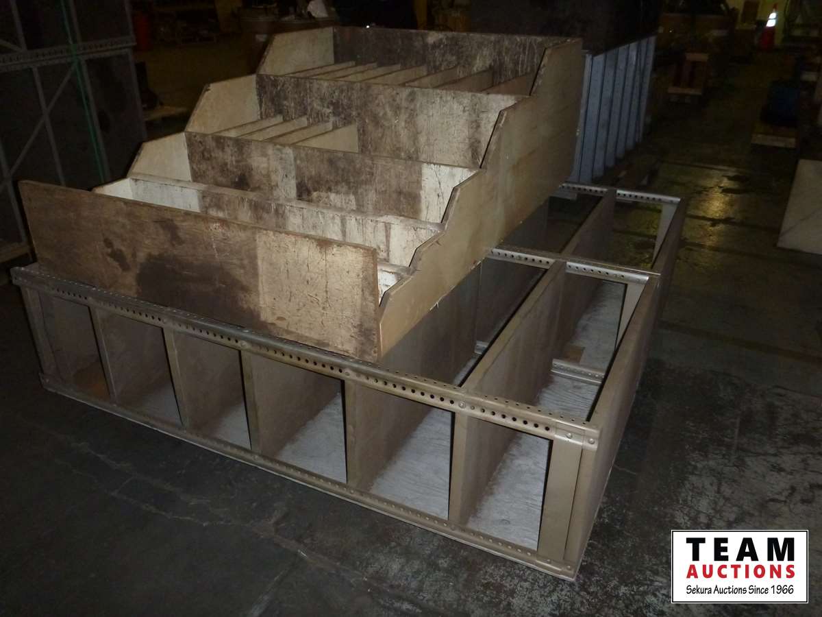 (2) metal shelf 36 inch W x 18 inch D x 72 inch H, (1) wood shelf 48 inch W x 48 inch H