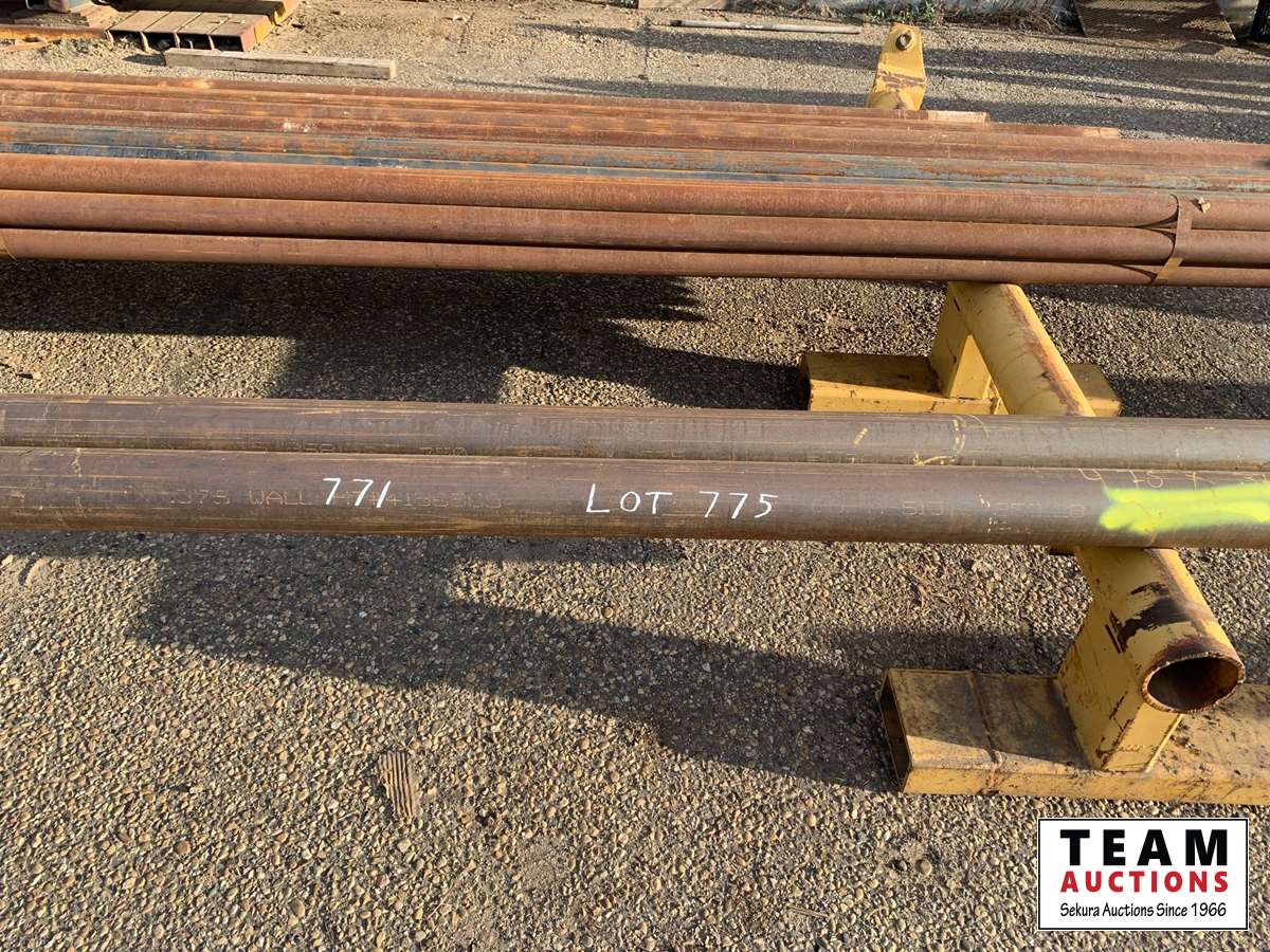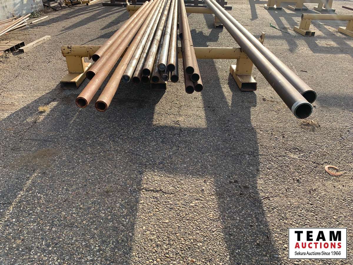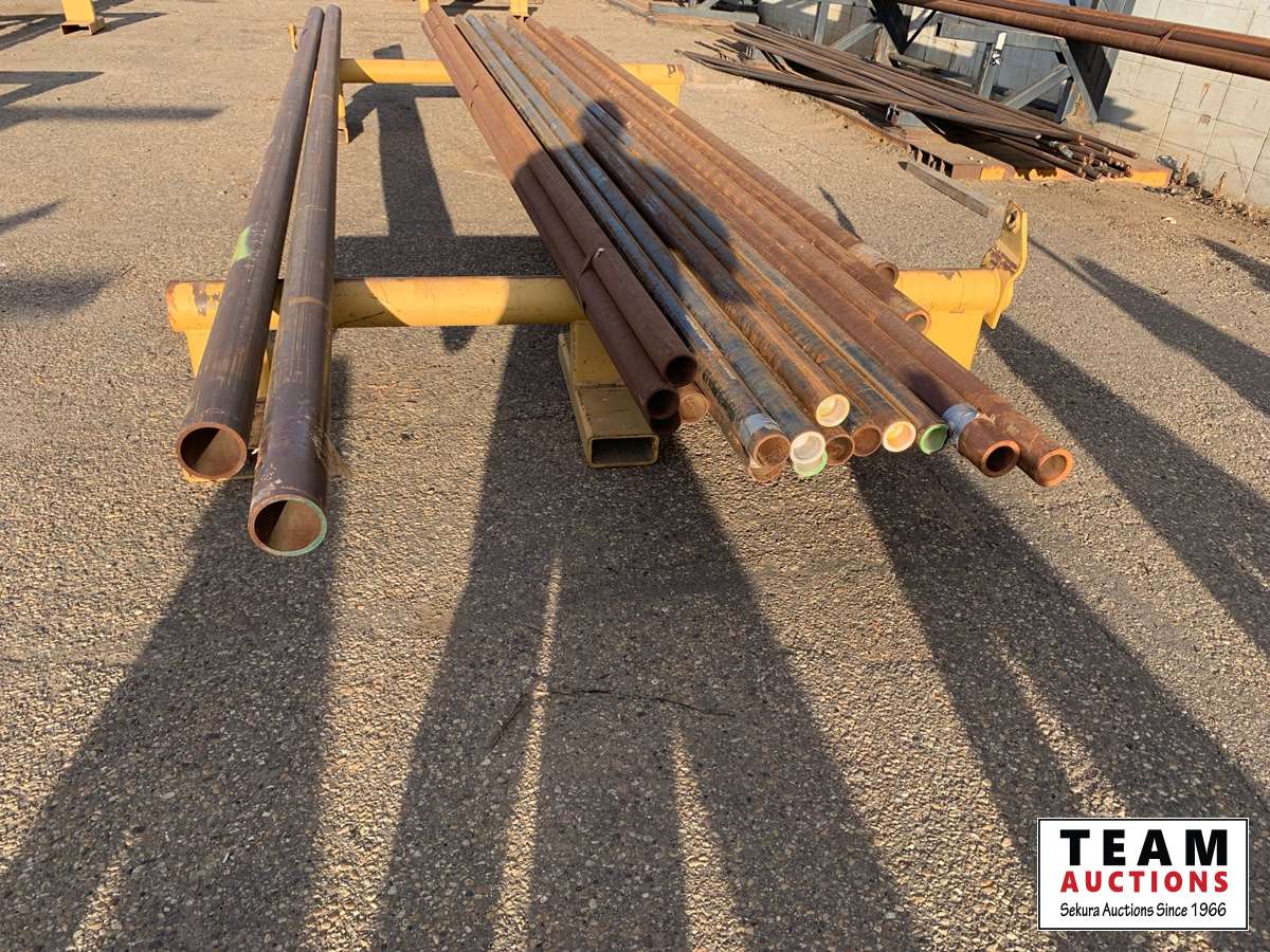 (4) pieces (81±) lineal ft of 3-3/8 inch OD X 2-3/8 inch ID pipe, (14) pieces (288±) lineal ft of 2-7/8 inch OD X 2-7/76 inch ID pipe, (2) pieces (45±) lineal ft of 4-3/4 inch OD X 4 inch ID pipe, (2) stands Included
