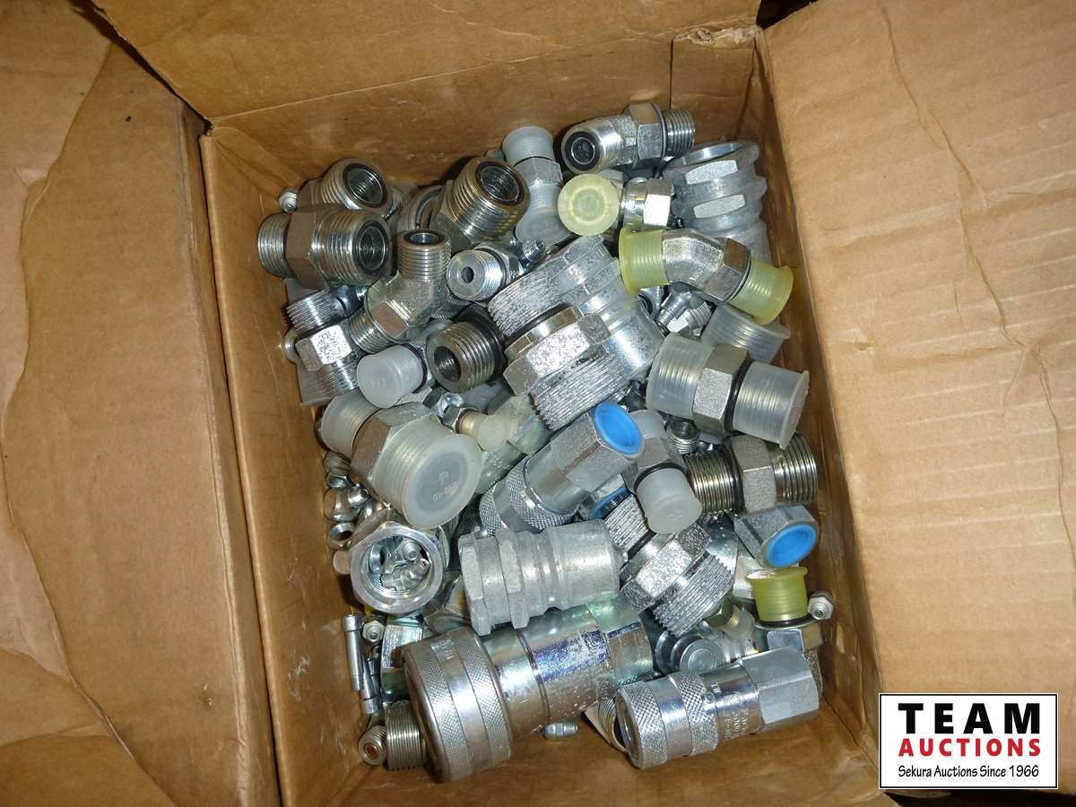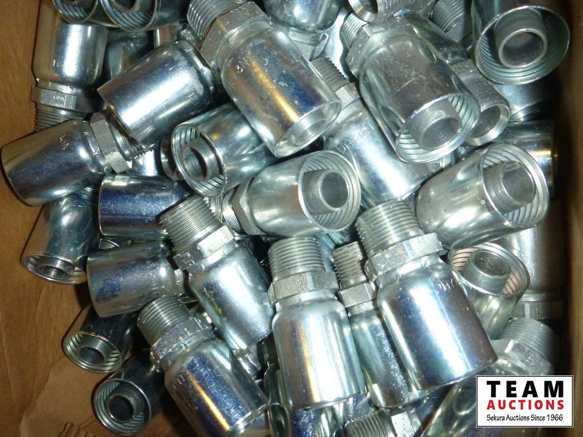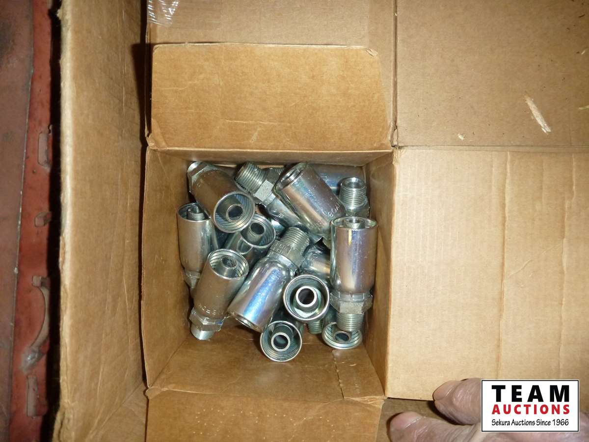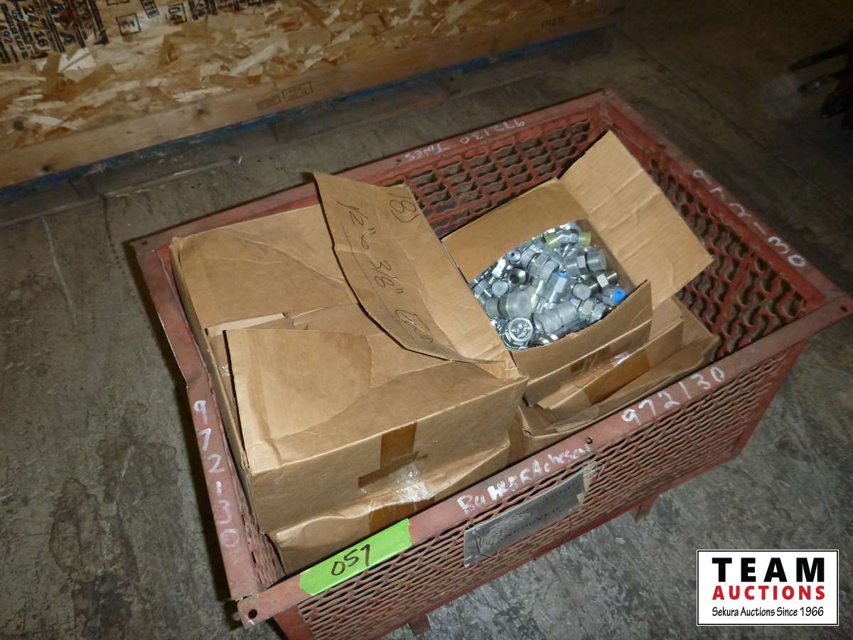 66 Metal Crate of Hydraulic Fittings & Crimp on Hose Ends