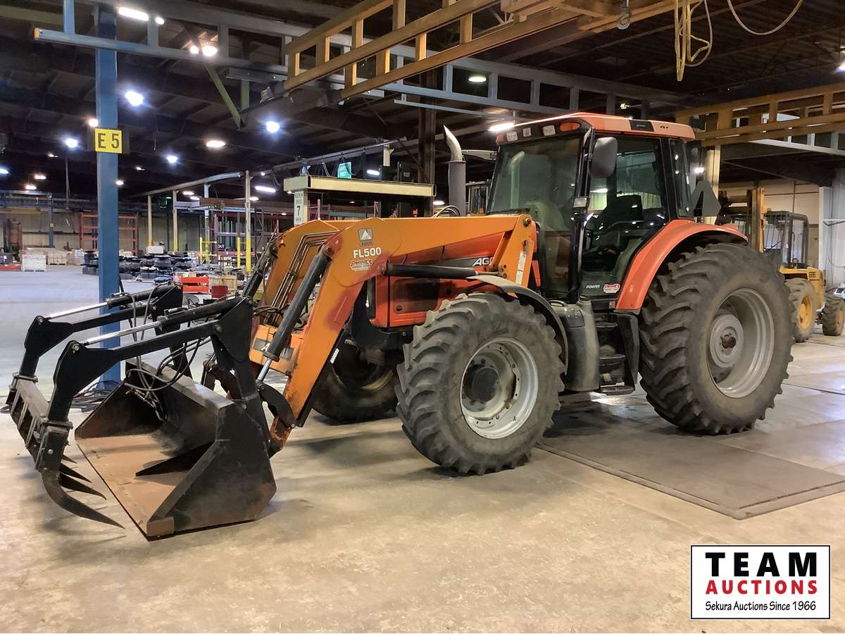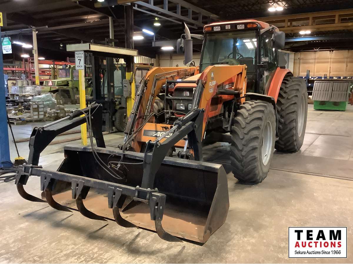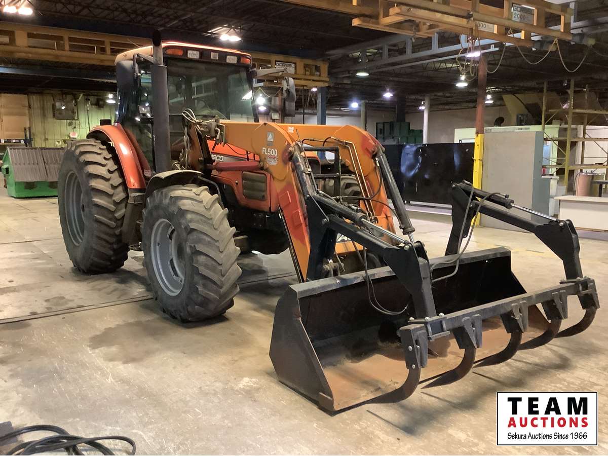 Agco FL500 loader, 8 ft bucket, grapple, left hand reverser, Power Maxx CVT transmission, 540/1000 PTO, 3 ppt hitch, (4) rear hydraulic outlets, rear wheel weights, 16.9R28 front & 20.8R38 rear tires