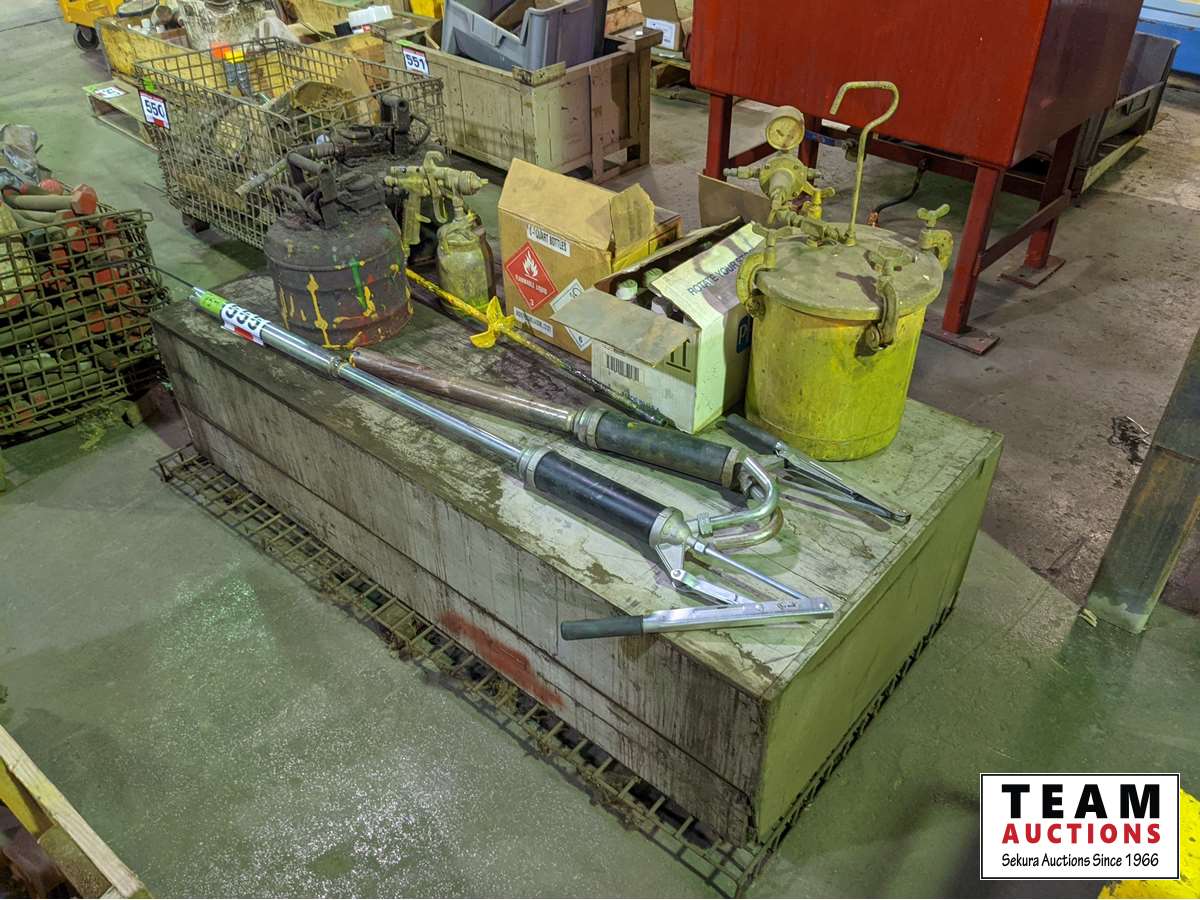 Page wire, pant and painting supplies, sprayer, barrel pump