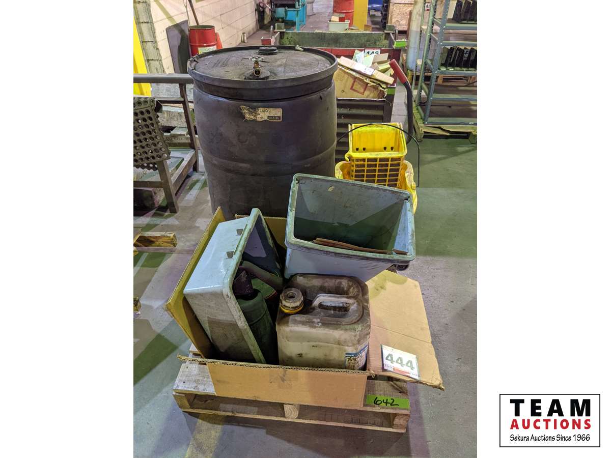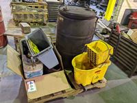 Poly barrel, mop pails, poly containers, funnel, oil pour container
