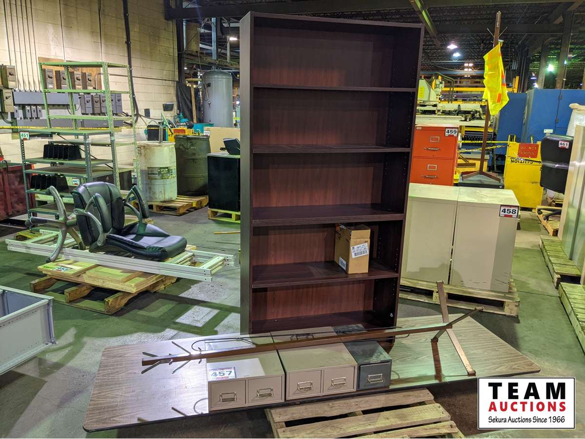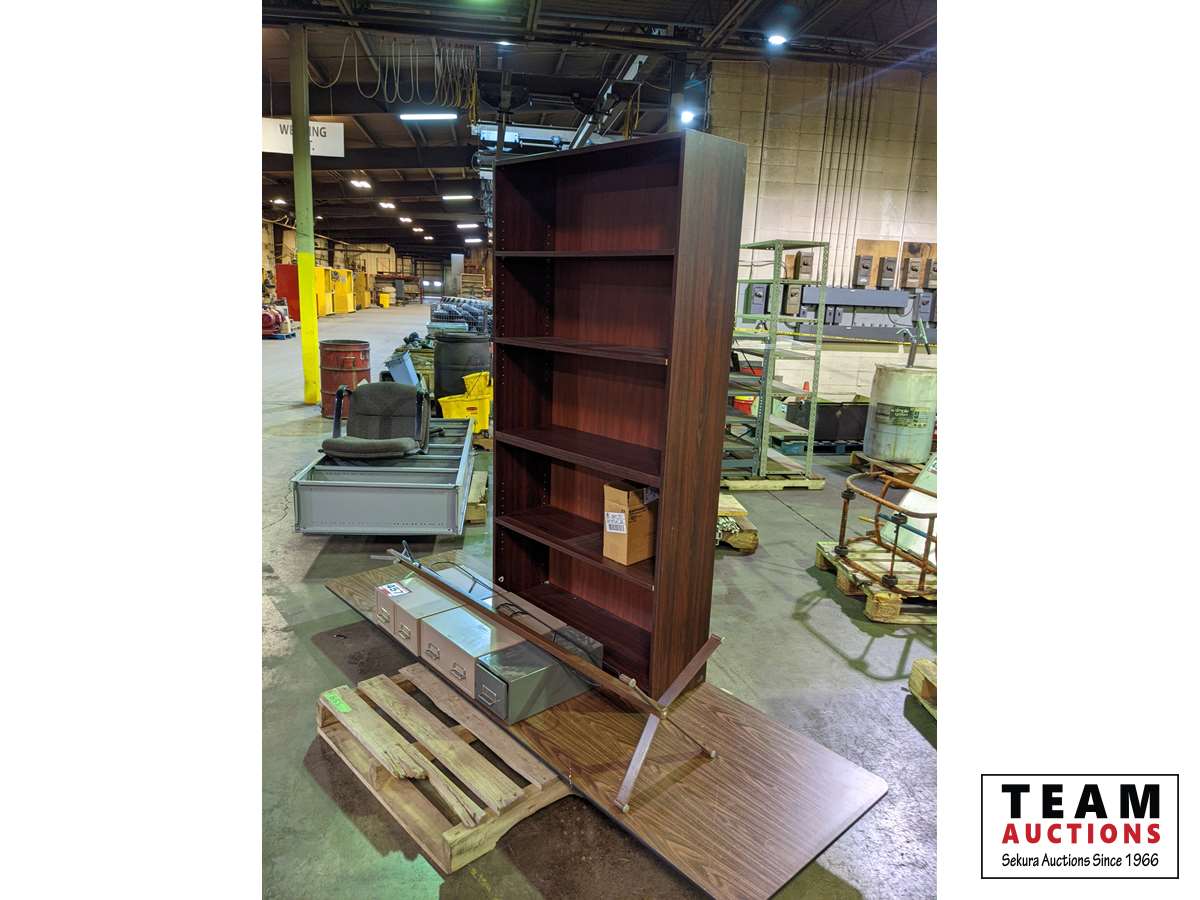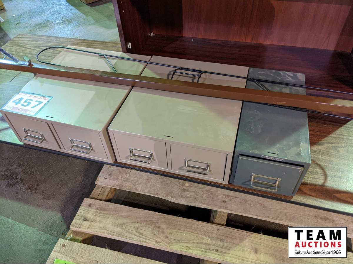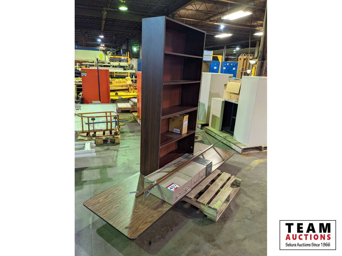 Small metal filling drawers, coat rack, folding table, shelf unit 36 inch wide X 72 inch high X 12 inch deep
