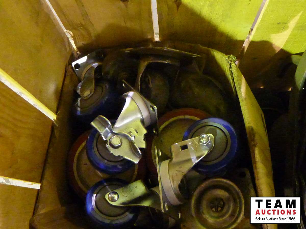 Pipe dies, stainless steel MIG wire, small & large casters, portable air compressor, miscellaneous items