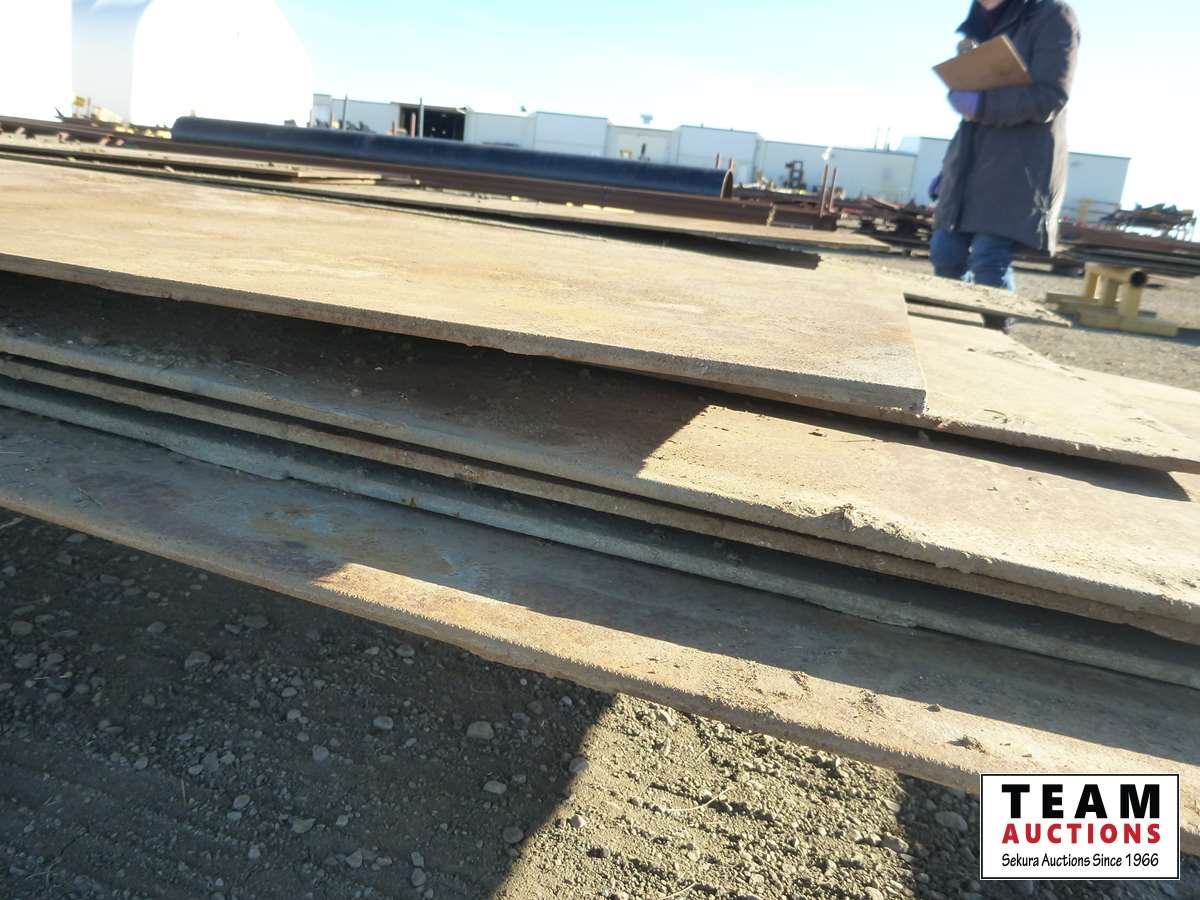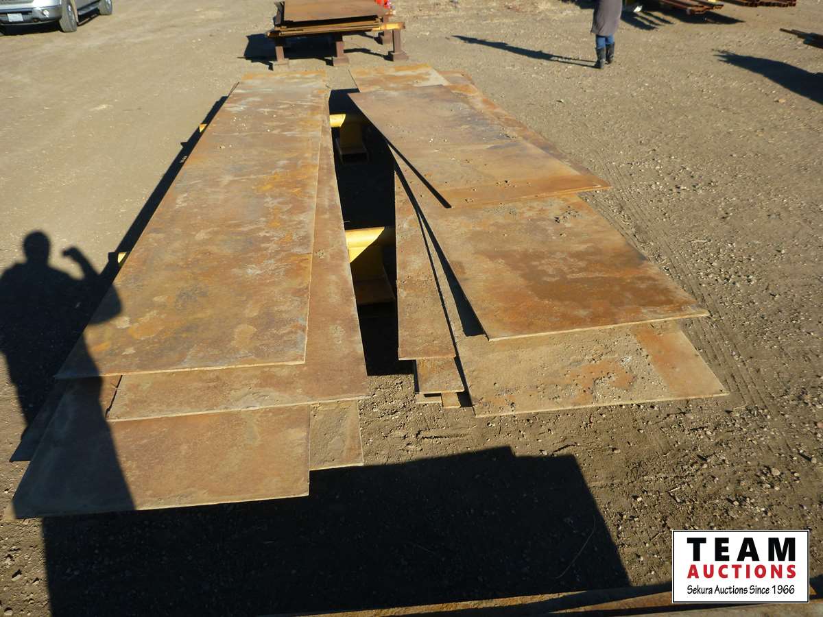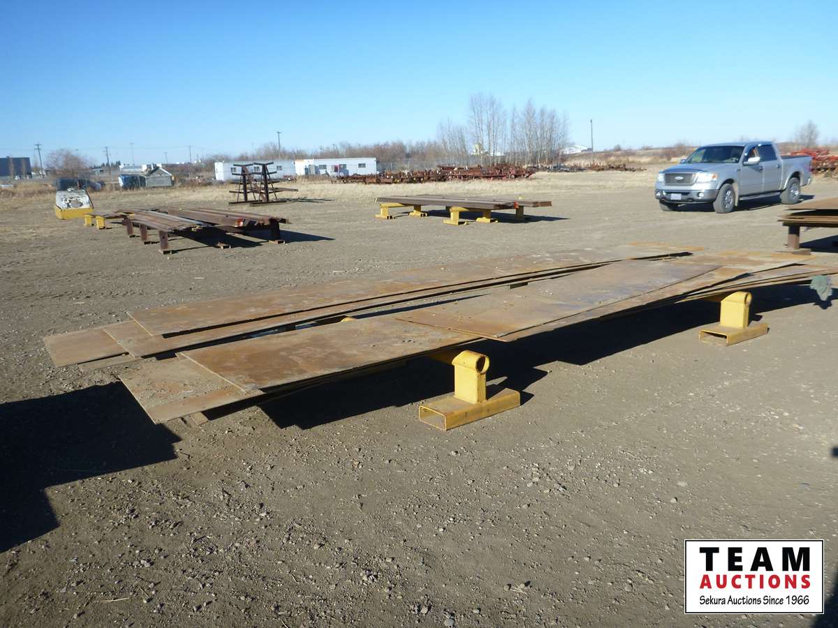 Mostly 3/8 inch X 37 inch wide, up to 20 ft long, a few smaller pieces, (2) stands included