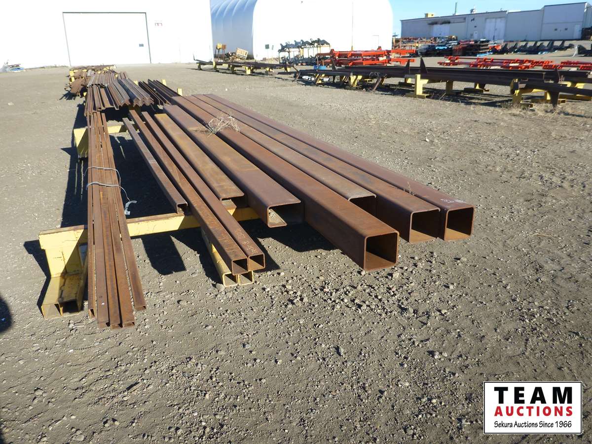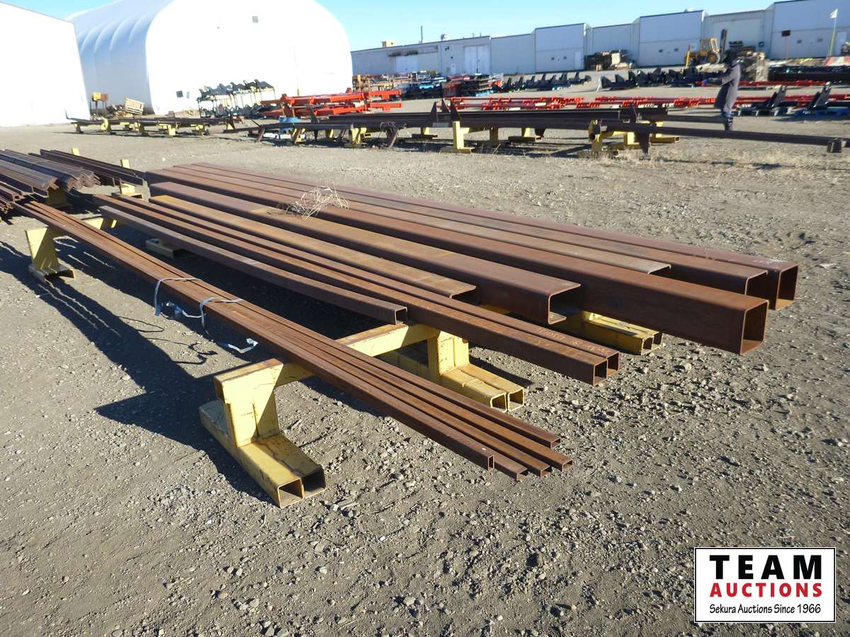 (4) 8 inch X 8 inch X 24 ft square tube, (2) 3.5 ft X 20 ft square tube, qty of other sizes, (2) stands included