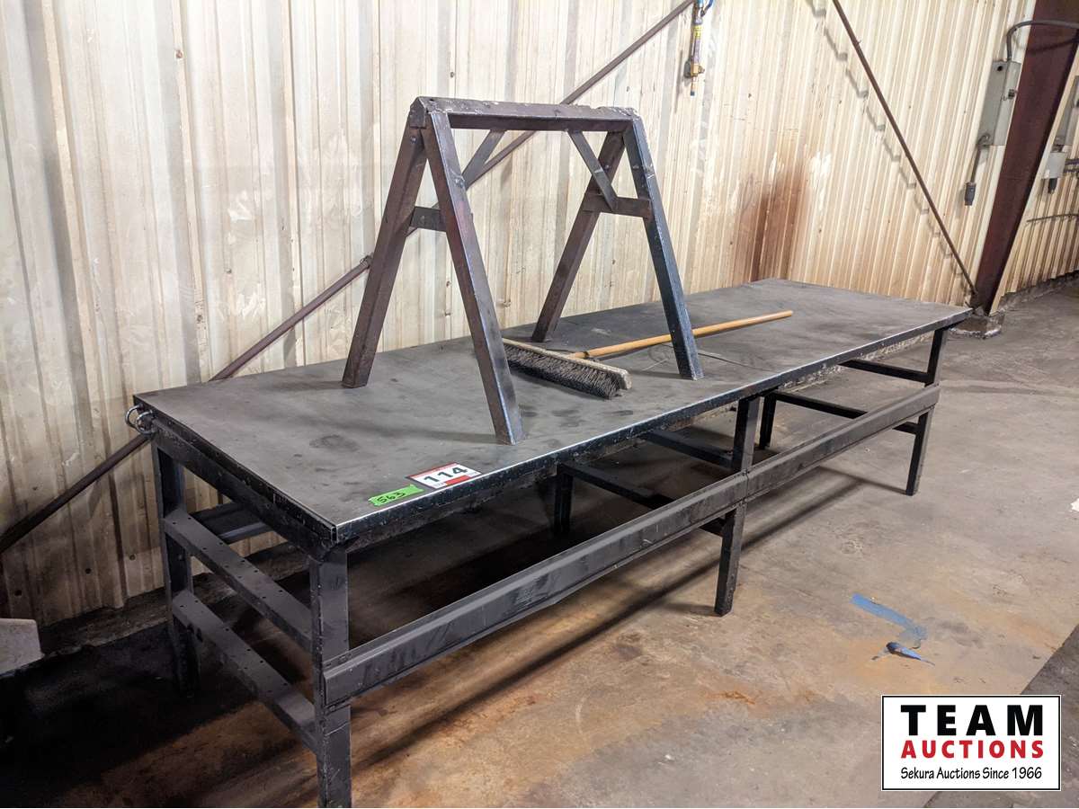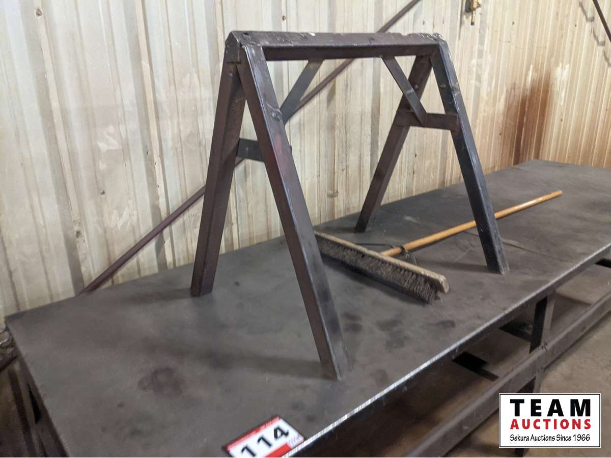 114 Work Bench, Metal Saw Horse & Broom