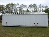 All steel construction with no wood, mounted on steel, skids, (3) gas furnaces, (2) rooms, bathroom, hot water tank, (2) side door entrance, out side steel custom build metal decks