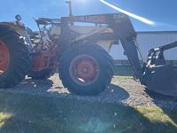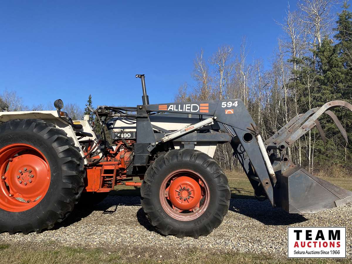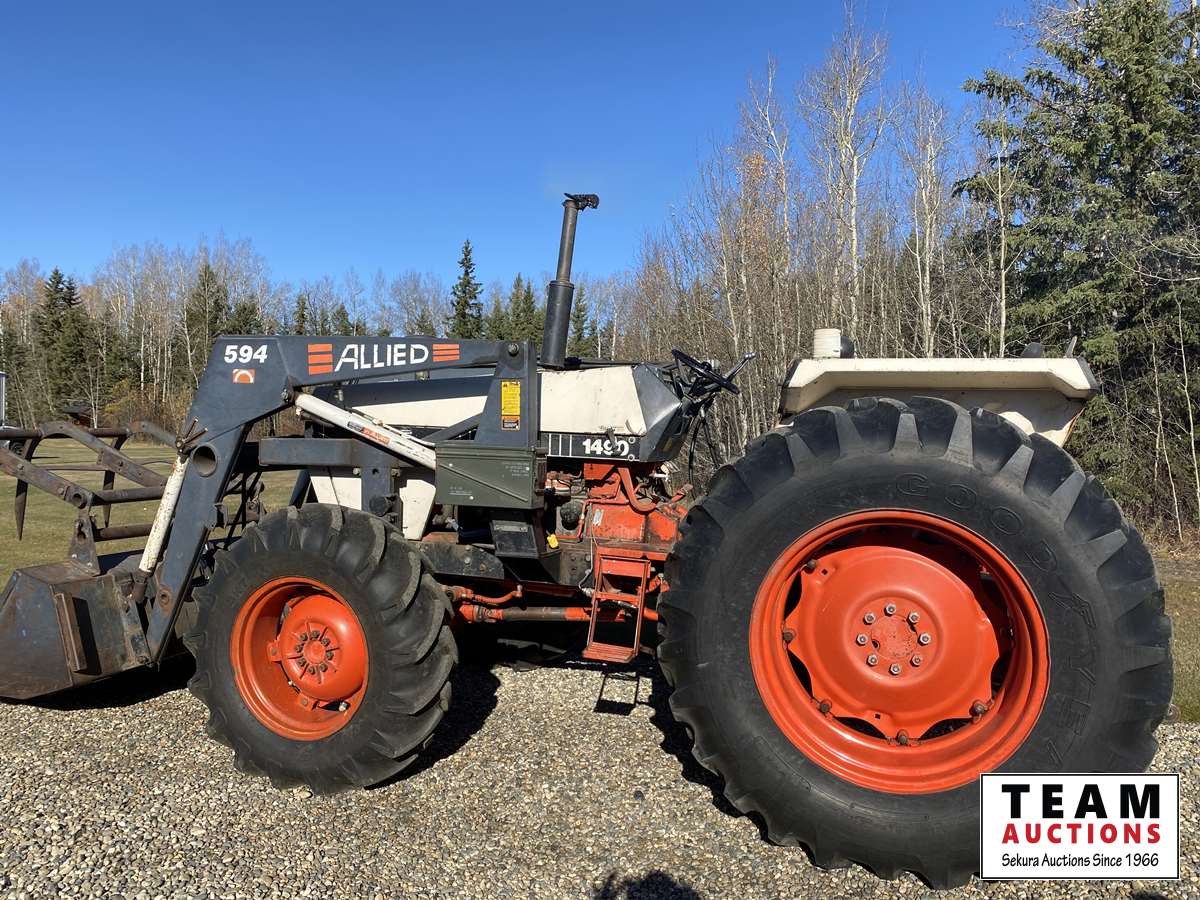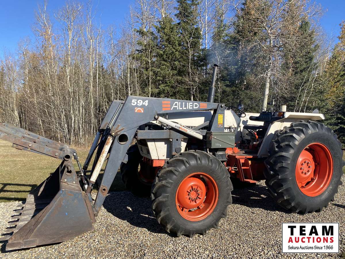Allied 594 loader, 71 inch bucket, diesel engine, 540 PTO, 3 PT, 2 hydraulic outlets, 90% 13.6-24 front, 80% 18.4-34 rear