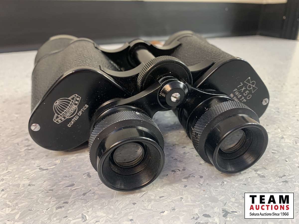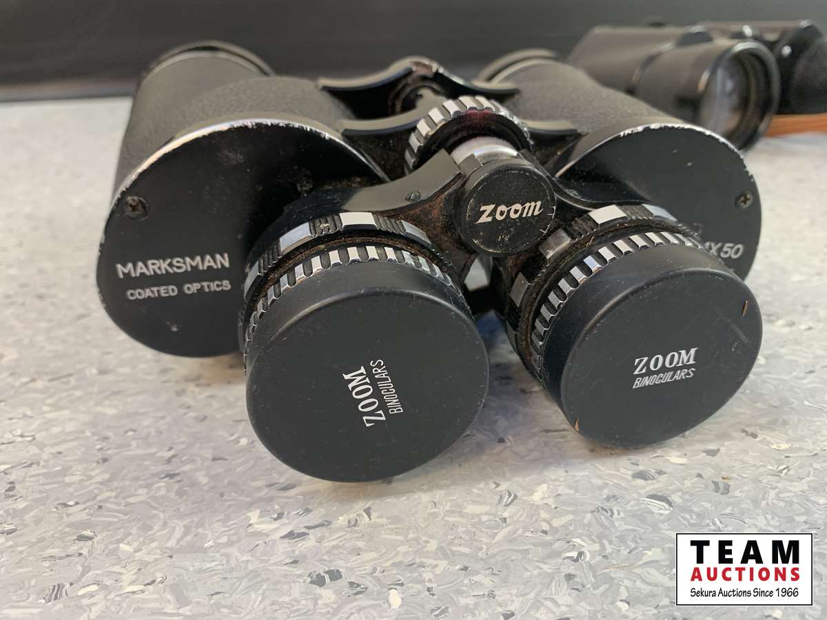 (1) Marksman Coated Optics 8X-14X 50 Zoom binoculars & (1) Universe Coated Optics 7 X 50 Field 7.1 No. 39858